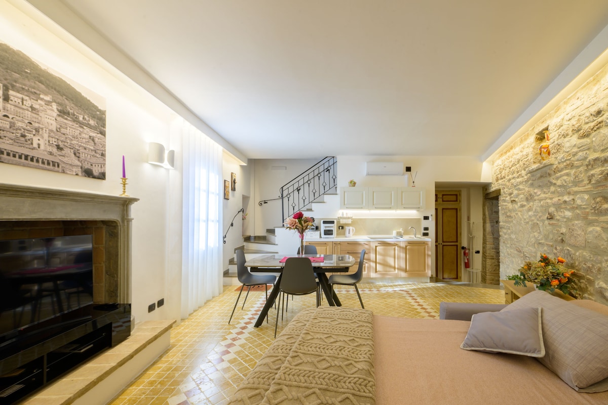 Sāras Džeinas tūristu noma atrodas Gubbio viduslaiku vēsturiskajā centrā, kas ir viens no skaistākajiem Itālijas ciematiem. Nelielais dzīvoklis tika atjaunots 2021. gadā ar atklātām akmens un vecām koka sijām, kā arī skatu, kas padara mājokli unikālu! Ļoti klusa gājēju zona. Ir virtuve, vannasistaba un divguļamā guļamistaba (ja tāda ir, bērnu gultiņa un augstais krēsls ar bērniem). 200 m bezmaksas autostāvvieta. Mājā visas ērtības atpūtai!
