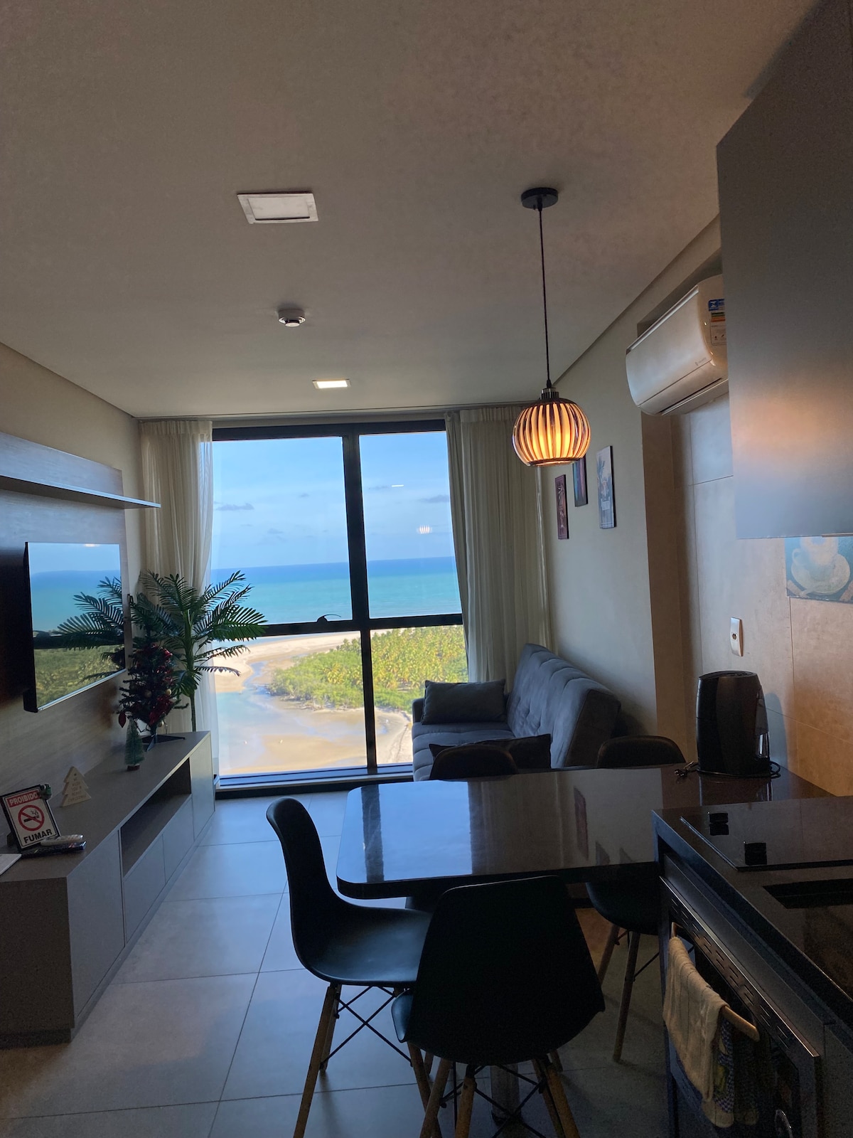 Divstāvīgs lofts ar divviru griestu augstumu, 34. stāvs, pie jūras, no kura paveras panorāmas skats uz Barra de Jangada pludmali, izklaidējieties kopā ar visu ģimeni šajā unikālajā un stilīgajā mājoklī vai izbaudiet darījumu braucienu mierīgā, klusā un īpaši ērtā vidē. GALVENĀS REKOMENDĀCIJAS: 01 - RESIFES STARPTAUTISKĀ LIDOSTA (13 km attālumā). 02- GUARARAPES IEPIRKŠANĀS CENTRS (8 km attālumā). 03- PORTO DE VISTU PLUDMALE (42 km attālumā).