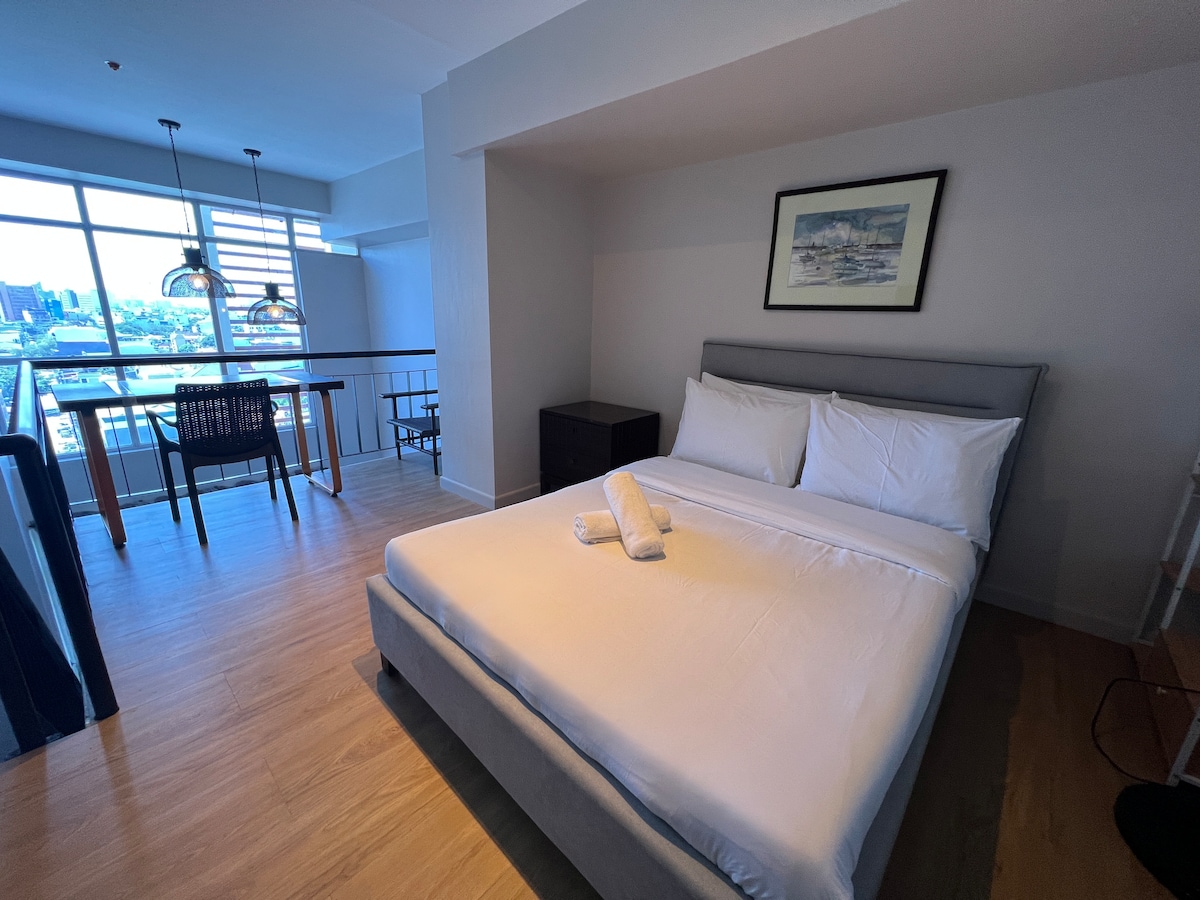 Apmetieties šajā stilīgajā, uzlabotajā dzīvoklī pašā Makati sirdī. Izbaudiet 300 Mb/s Wi-Fi, piekļuvi baseinam un sporta zālei, kā arī darbstaciju, kas ir ideāli piemērota darbam vai atpūtai. Atpūtieties ar liela ekrāna televizoru, kurā ir daudz Netflix, Disney+, Apple TV, Prime un YouTube. Aprīkots ar divguļamo gultu, pilnībā gaisa kondicionētāju, pilnībā aprīkotu virtuvi, ēdamistabas zonu, veļas mašīnu un karstu dušu. Netālu no Greenbelt, Glorietta, Ayala Center un top restos. Iekļauta bezmaksas kafija un ūdens!