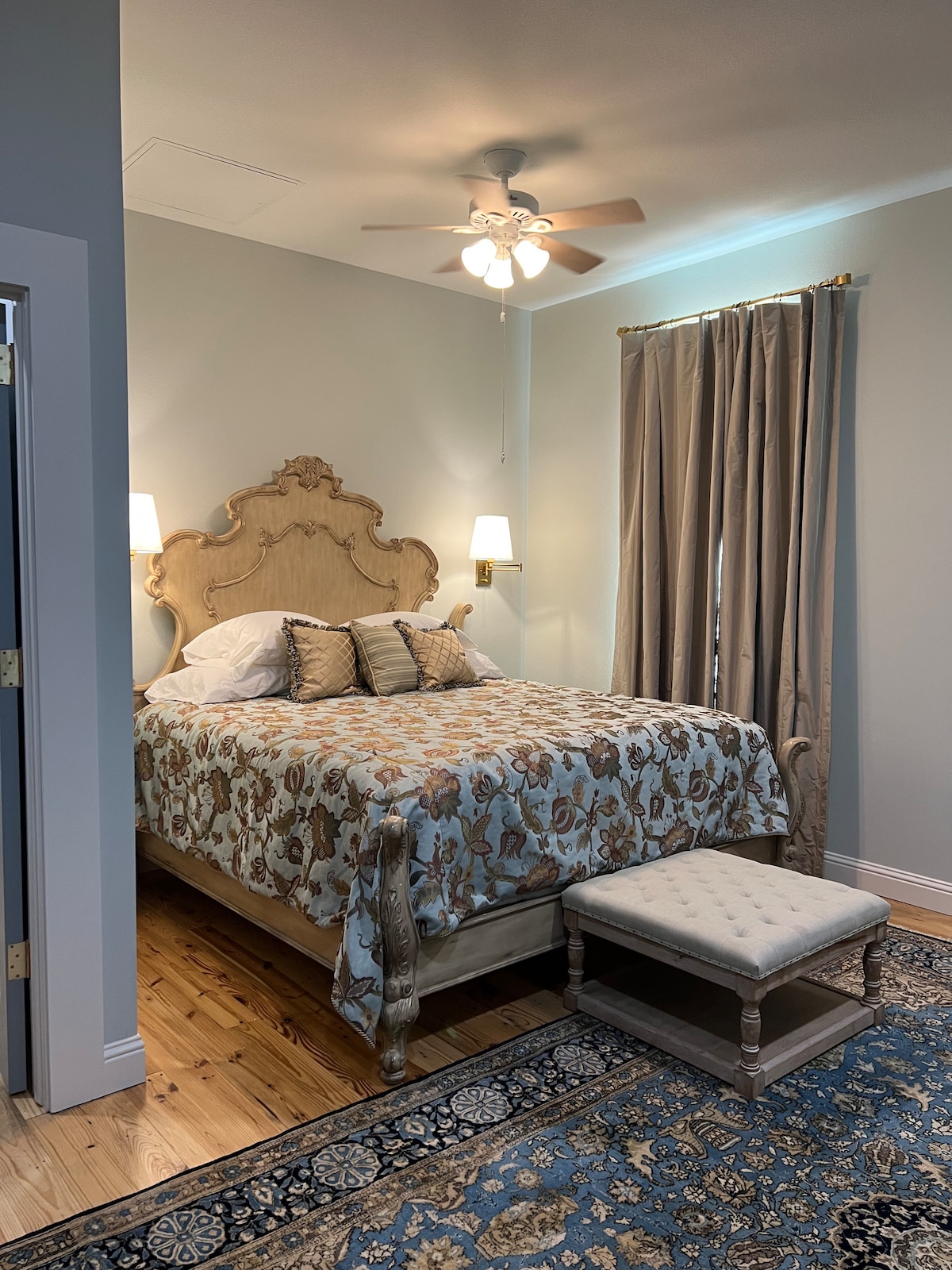 Just four blocks from the downtown square, you will enjoy a convenient location in a quiet neighborhood. Walk to restaurants, nightlife, festivals; then enjoy quiet slumber. You'll love my place for the kitchen if you want to cook, just hang out, the high ceilings, and comfortable living space. Perfect for couples, solo adventurers, business travelers, and families (with kids). Total occupancy 4. Breakfast included with daily rates. Our low weekly or monthly rates do not include breakfast.
