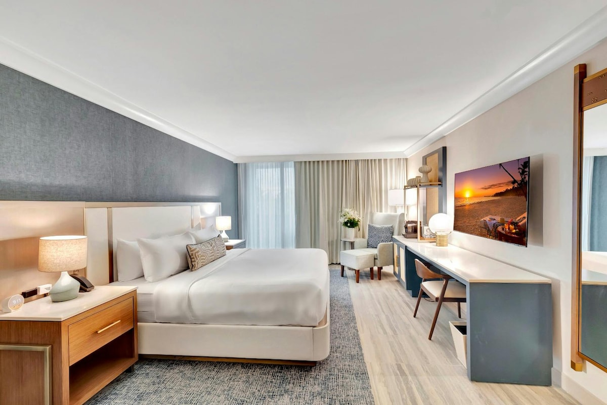 Ir pienācis laiks atvaļinājumam atcerēties skaisto Marriott Resort & Spa Singer salā. Šis ir bērniem piemērots luksusa kūrorts, kas piedāvā jautrību visai ģimenei. Mums ir viss nepieciešamais, lai radītu neaizmirstamāko atvaļinājumu Palmbīčā. Mūsu istaba ir paredzēta, lai jūs justos kā mājās ar pilnu virtuvi un veļasmašīnu/žāvētāju. No mūsu neskartās pludmales, pie okeāna esošā peldbaseina, ģimenes lagūnas stila peldbaseina un lutinošām SPA procedūrām, dzīvās mūzikas nedēļas nogalēs, restorāniem klātienē