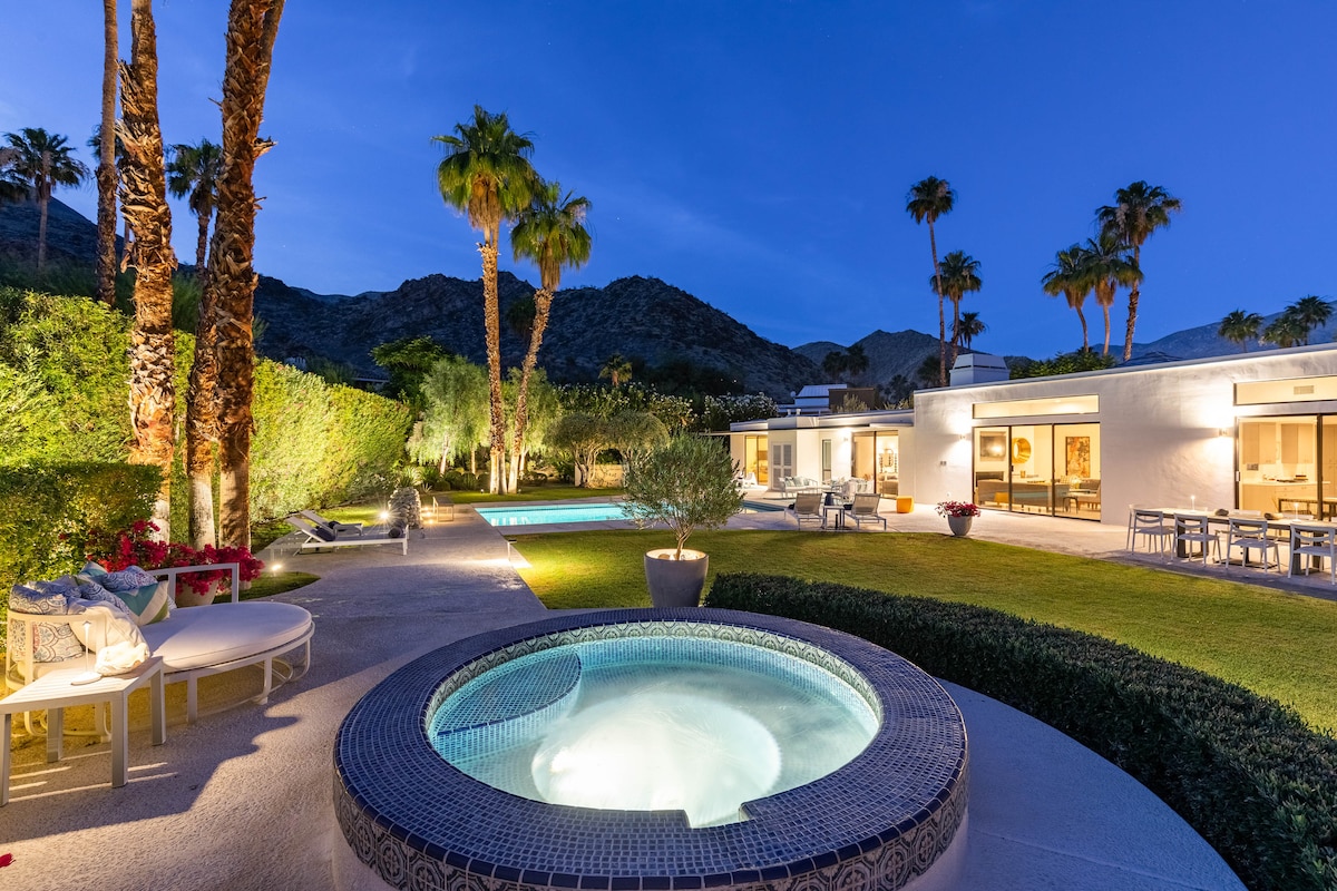 Palmetto māja - luksusa + gadsimta vidus oāze ar privātu kūrortam līdzīgu baseinu ar kabanu, ugunskura vietu, burbuļvannu un brīnišķīgiem skatiem uz San Jacinto kalniem, kas atrodas aptuveni 2 jūdžu attālumā no Palmspringsas centra. Šo gadsimta vidus moderno mājokli projektēja leģendārais arhitekts Džeimss Cioffi, un tas piedāvā plašu plānojumu un nevainojamu plūsmu uz baseina zonu. Augsti griesti un logi ļauj plūst tonnām dabiskā apgaismojuma, radot oāzi gan iekšpusē, gan ārpusē.