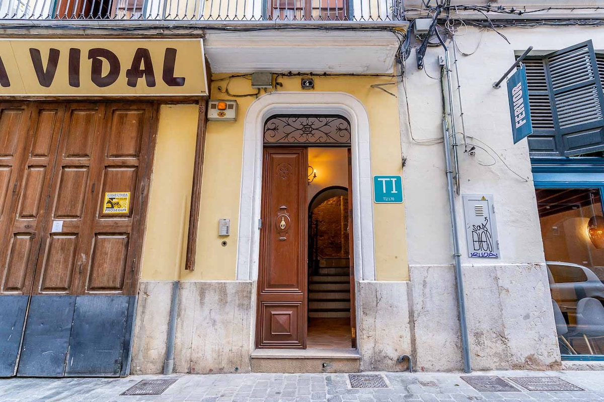 Jauks un stilīgs lofts, kas atrodas vecpilsētas sirdī, krāsās. Llotas apkaimē ļoti klusa un saulaina iela. Atveriet skatu uz privātu dārzu, masīvu un simbolisku ēku La Lonja. To ieskauj bāri un restorāni, bet vienīgā iela ir mierīga, lai atpūstos. Tuvākā pludmale atrodas 7 minūšu gājiena attālumā, 3 minūtes līdz STP KUĢU BŪVĒTAVAI un Náutico de Palma sporta ostai, un tā ir atpūtas telpa. Santa Katalīnas tirgus atrodas 5 minūšu gājiena attālumā no katedrāles, muzejiem un mākslas galerijām.