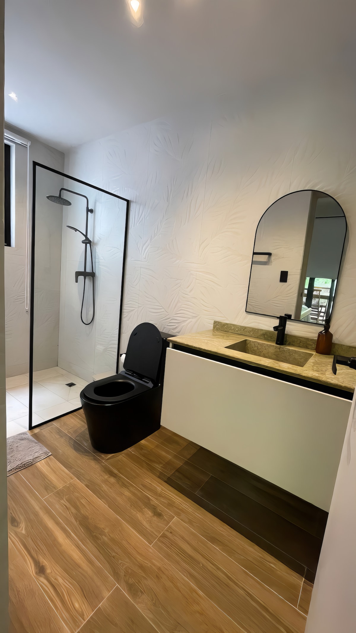 Šī īpašā istaba jūs apburs divatā. Šī pirmā stāva istaba ar diviem logiem ar skatu uz okeānu un dārzu piedāvā spilvenu augšējo divguļamo gultu (137 cm x 190 cm), 2 naktslampas, bezmaksas bezvadu internetu, plakanā ekrāna viedtelevīziju un privātu vannasistabu ar dušu. Izbaudiet kopīgo balkonu ar skatu uz okeānu, tropu dārzu vai mežu un kopīgu šūpuļtīkla zonu. Papildus baudiet: Plunge Pool -Sun Terrace - Gardens - Netālu senais mežs. Mājdzīvnieki tikai apartamentos, nevis šajā istabā. Istabā ir gaisa kondicionētājs.