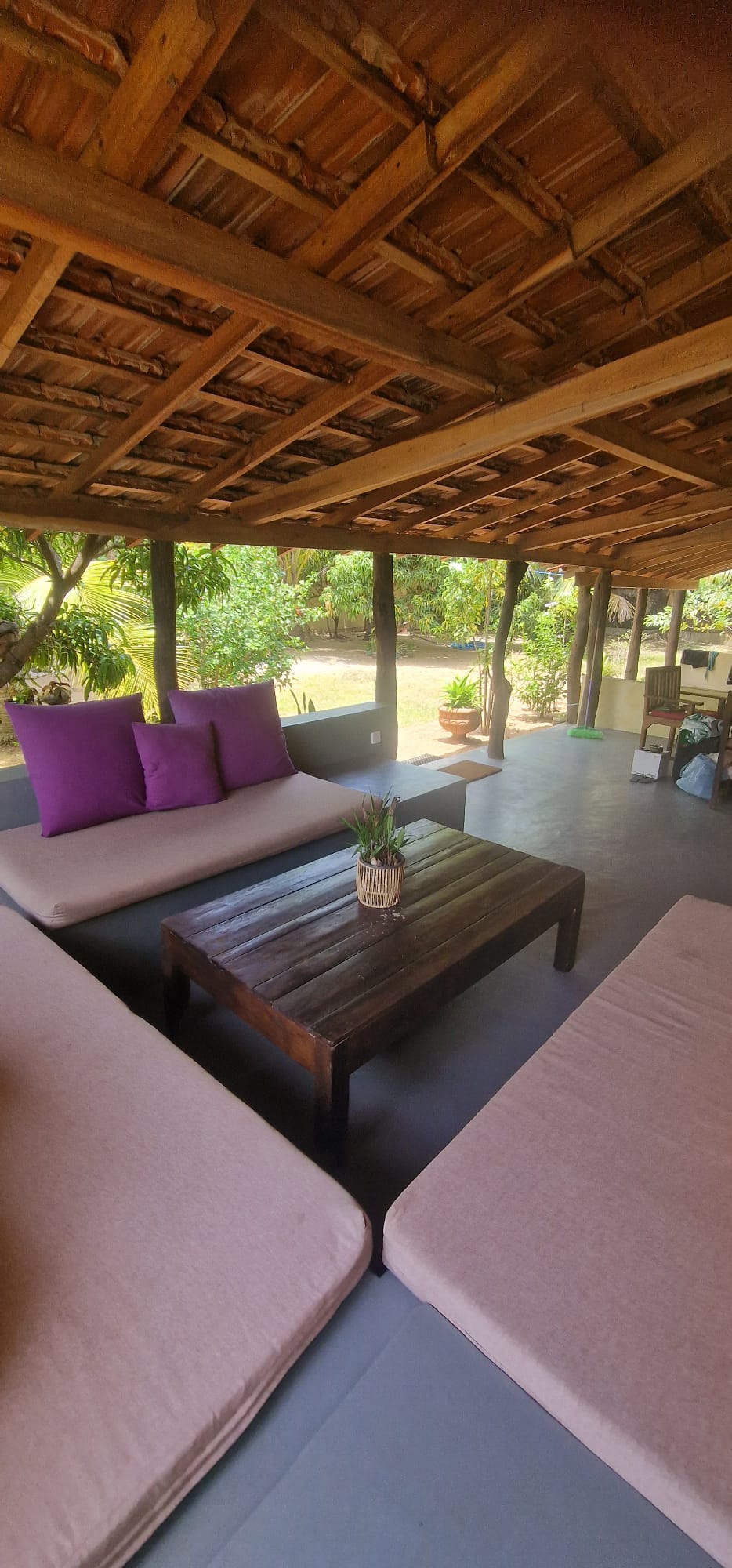 Bliss Yoga Cottage ir rāma privāta kotedža Whiskey Point, 150 m attālumā no okeāna un 7 minūšu gājiena attālumā no sērfošanas. Aprīkots ar plašu divvietīgu guļamistabu ar gaisa kondicionētāju. Iekļauta aprīkota virtuve, uzticams Wi-Fi, atpūtas veranda un unikāla āra duša. Trenējieties jaunajā jogas šalā vai atpūtieties milzīgajā privātajā dārzā. Ideāli piemērots vienatnē/pāriem, kas meklē mieru, jogu, sērfošanu un dabu Arugamas līča tuvumā (9 km). Jūsu mierīgā bāze. Bliss kotedža ir jūsu ideālā bāze Ilgtermiņa rezervācijām tiks piešķirta atlaide. Lūdzu, sazinieties ar mums.