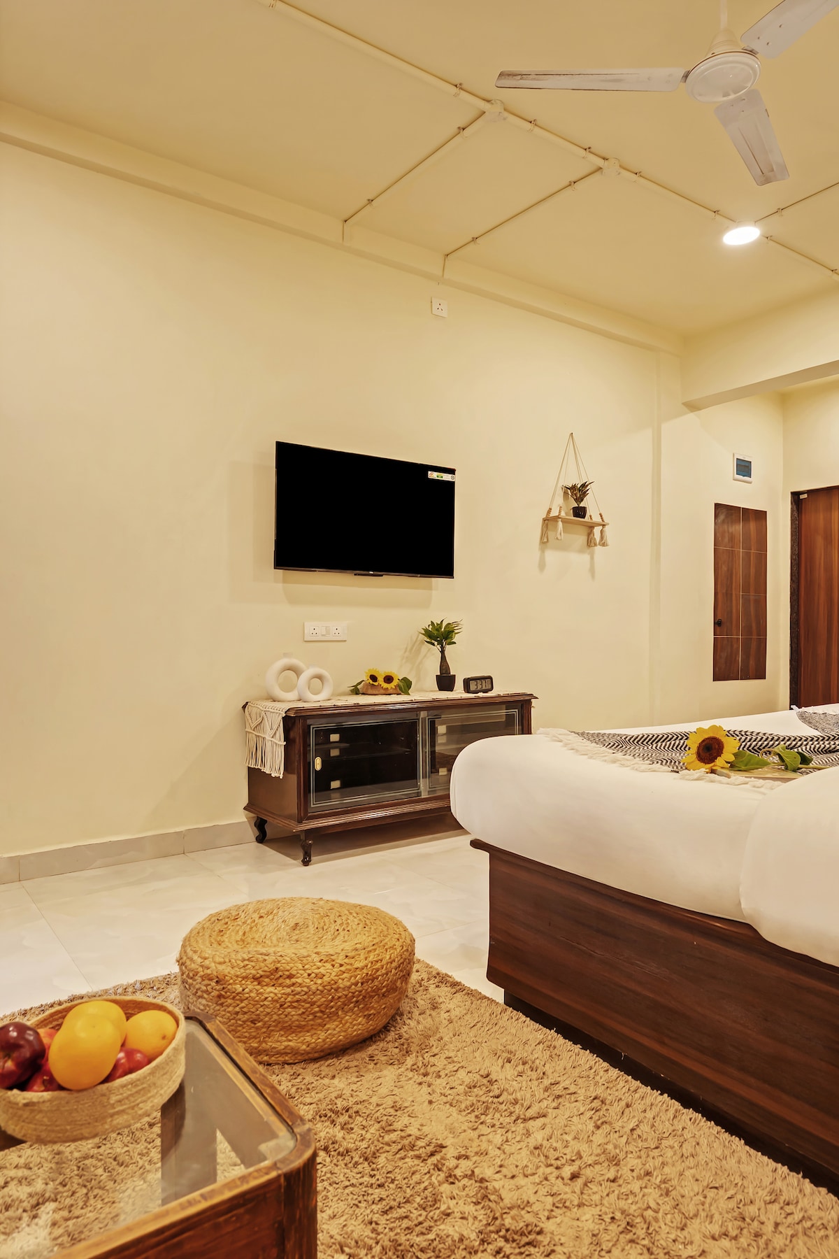 Atpūtieties mūsu mierīgajā lauku mājā, kas atrodas tikai 10 minūšu attālumā no Pančgani pilsētas. Mūsu lauku saimniecība, kas ir ideāli piemērota pāriem un ģimenēm, piedāvā mierīgu atpūtu dabas ieskautā vidē. Dodieties pastaigā pa košiem augļu dārziem, izvēlieties svaigas zemenes un papaijas un iepazīstieties ar mūsu draudzīgajiem lauksaimniecības dzīvniekiem. Izbaudiet lauku šarmu, kas apvienots ar modernām ērtībām, padarot to par ideālu vietu atpūtai. Tuvu pilsētai, ko ieskauj apstādījumi, tā ir ideāla atpūta dabā. Rezervējiet savu mājokli jau šodien!