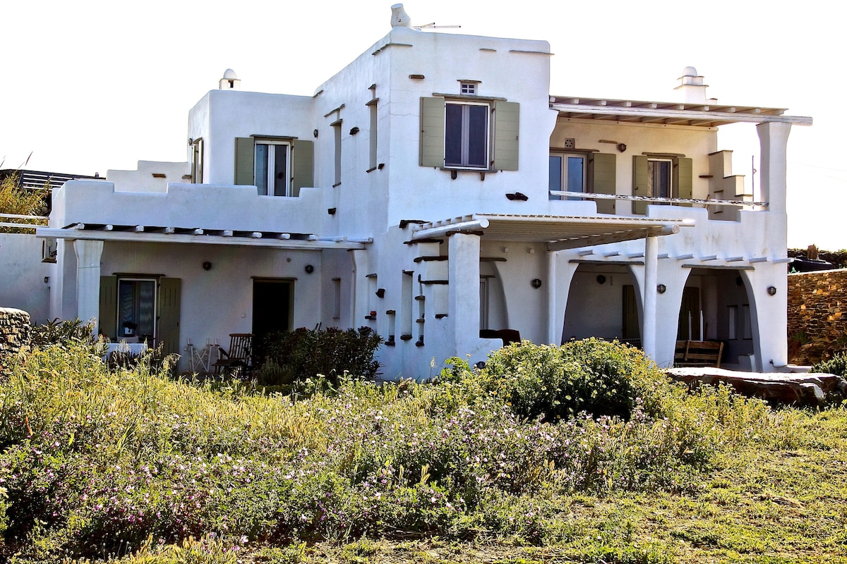 Ieejiet unikāli pārskatītā tradicionālā Kiklādu mājoklī, kas atrodas Ktikadosas malā. Nometiet somas, atveriet divviru durvis, kas ved uz terasi, un iekārtojieties amfiteātra skatā uz kalniem un jūru! Īpašums sastāv no vairākām terasēm, kas ir ideāli piemērotas fresku maltītēm, atpūtai un nepārspējamiem saulrieta skatiem. Dienas laikā jūs varat sagaidīt, ka salas ir unikālas vietējās vārnas, un pēc saules rieta mēness izgaismotu apmeklējumu no ielejas aitām.