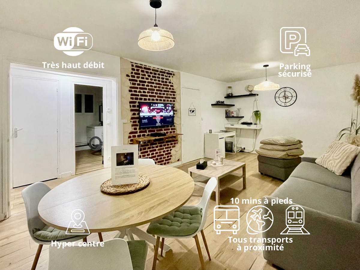 Tipiskā BEAUVAIS mājā baudiet pilnībā renovētu studiju pirmajā stāvā siltā atmosfērā. "La Beauvai 'en" atrodas ideālā vietā, pašā pilsētas centrā, 5 km attālumā no lidostas un 15 minūšu gājiena attālumā līdz dzelzceļa stacijai. Tās atrašanās vieta ļaus jums atklāt tās lielisko katedrāli, Musée de l 'Oise vai vienu no skaistākajiem ciematiem Francijā Gerberoju.