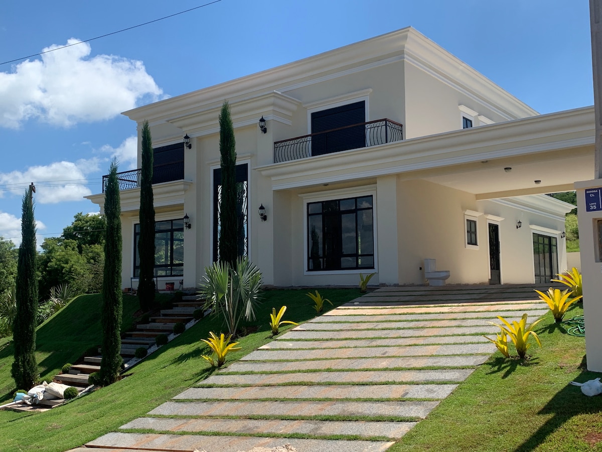 Casa de Campo lielākajā un vislabāk strukturētajā daudzdzīvokļu namā ar vārtiem SP interjerā. Māja ir aprīkota ar visiem atpūtas piederumiem un virtuvi. Klimatizēts peldbaseins Mājā ir: -3 GUĻAMISTABAS -3 VANNASISTABAS -COZINHA PABEIGTS -LAVANDERIA ar mašīnu - APSILDĀMS BASEINS AR HIDROENERĢIJU - BĒRNU BASEINS ŠŪPULIS - GARDĒŽU ZONA AR GRILU -SMART TV60 / TV W/ AR VISIEM KANĀLIEM - Straumēšana - Arkondicionēšanas apartamenti - Wi-Fi | 400 MB optiskā šķiedra @recantodosfoz