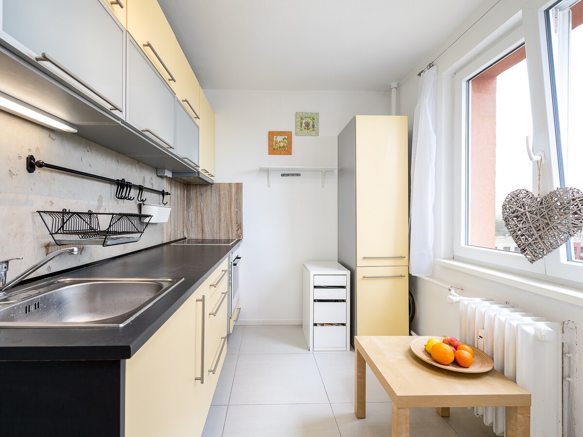 Skaists jauns saulains dzīvoklis (43 m2) ar savu segtu autostāvvietu un gaisa kondicionētāju, kas atrodas 5 minūšu gājiena attālumā no Pardubices centra un 7 minūšu gājiena attālumā no dzelzceļa un autoostas. Ir pilnībā aprīkota virtuve (tosteris, kafijas automāts, tējkanna, indukcija, cepeškrāsns, ledusskapis un ēdiena gatavošanas piederumi). Dzīvoklis ir piemērots 2 pieaugušajiem. Ir divguļamā gulta, televizors, rakstāmgalds un liels atzveltnes krēsls. Vannasistabā ir liels sippy stūrītis un veļas mašīna. Terase ir aprīkota ar atpūtas zonu. Priecāsimies jūs uzņemt!