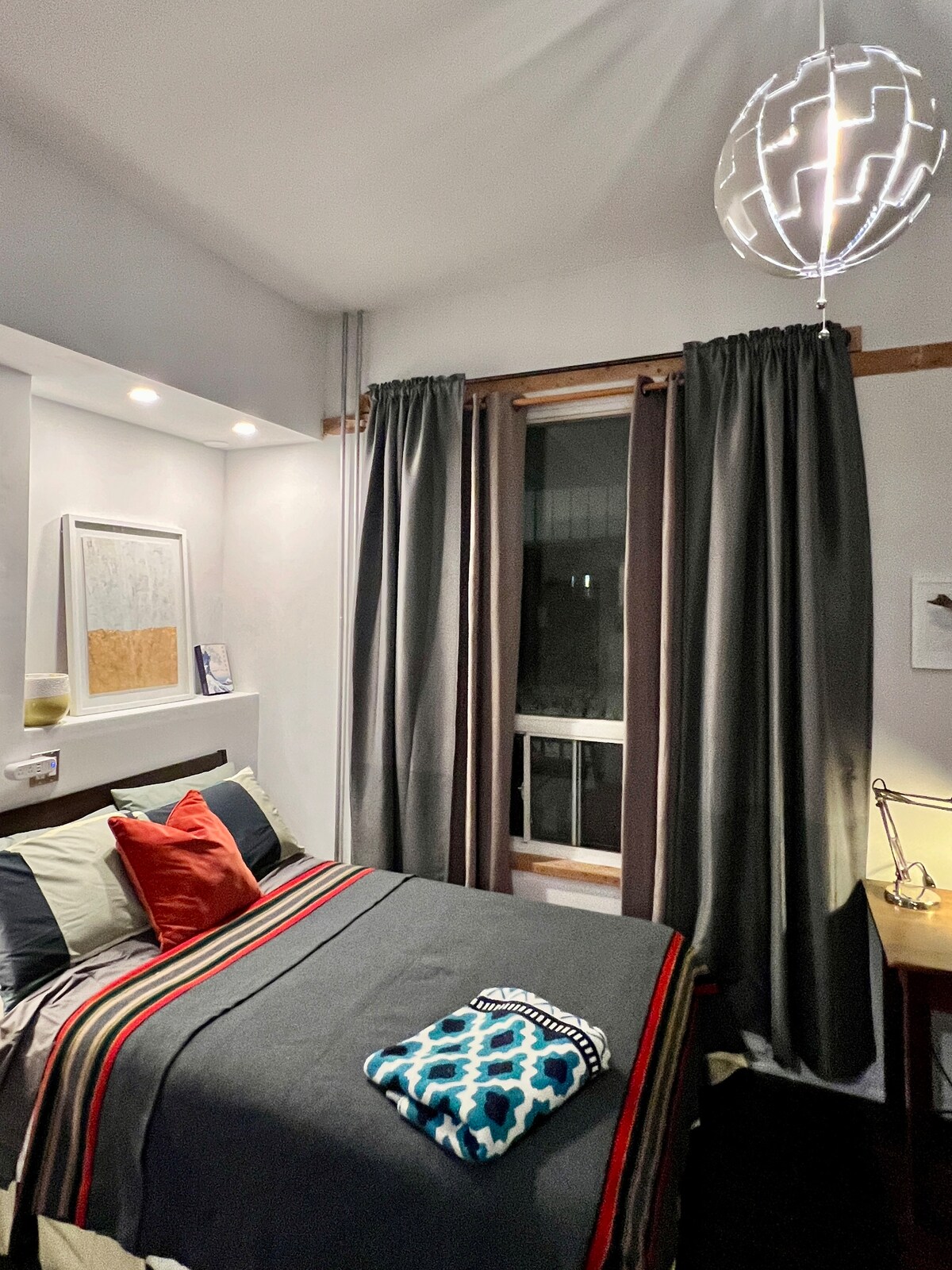 Pastaiga uz BMO lauku, 2026. gada Pasaules kausa izcīņas rīkotāju! Profesionāli iekārtota plaša un eleganta Airbnb viesu istaba. Skaista, atklāta ķieģeļu siena ar dizaineru mēbelēm visā apartamentā. 75 collu televizors, pilna virtuve un šķīvji , trauki, katli/pannas, pūtēja žāvētājs, gludeklis Pilnīgi jaunas mēbeles un vannasistabas ierīces Bezmaksas dienas autostāvvieta uz ielas, autostāvvieta pa nakti no pilsētas. No plkst. 00:00 līdz 7:00 ir nepieciešama autostāvvietas atļauja.