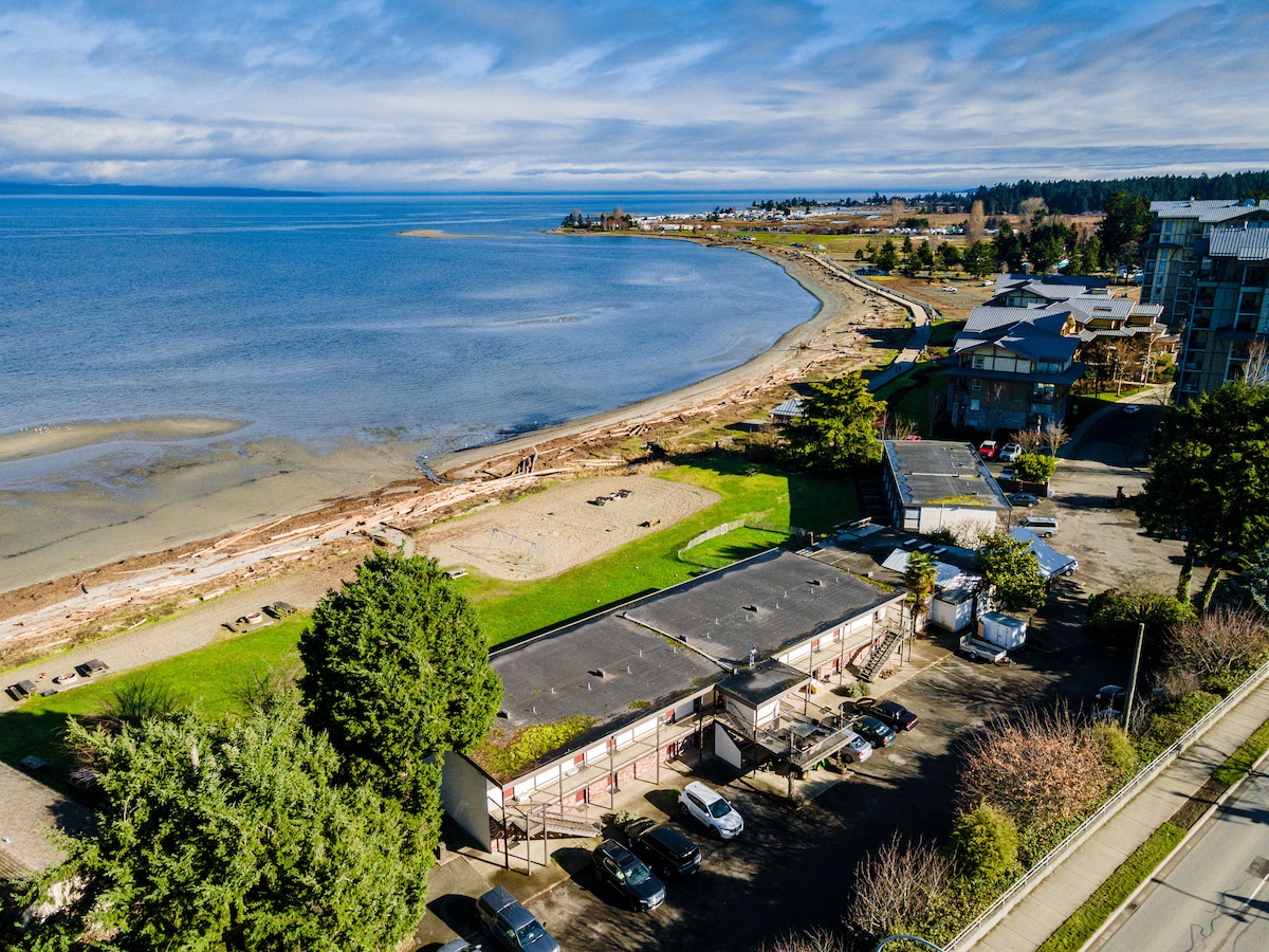Nakšņojiet Parksvilas centrā! Milzīgs 3 gultu luksusa numurs, kas ir ideāli piemērots grupām. Pastaiga līdz kafejnīcai, ēdamistabai un pludmalei dažu minūšu laikā. Slavenā Boardwalk & Adventure World rotaļu laukums atrodas īsas pastaigas attālumā. Ir pilnībā aprīkota šefpavāra virtuve un plaša dzīvojamā zona. Ērti dienas braucieni uz smilšaino Rathtrevor Beach vai Qualicum. Izbaudiet labāko, ko piedāvā sala, bez stresa. Tavas brīvdienas bez automašīnas sākas šeit!