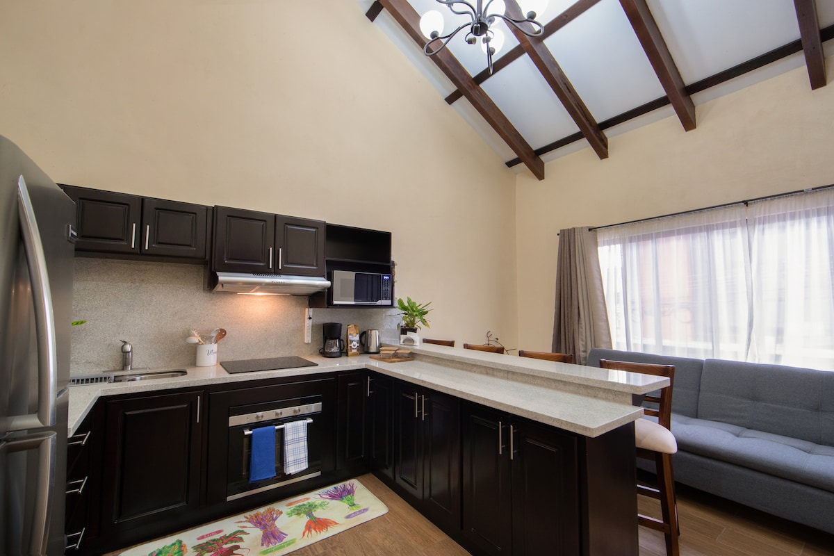 Laipni lūdzam PROVECHOZAS! Šī vienība atrodas ģimenes īpašumā esošā mājoklī ar augļu kokiem un savvaļas dzīvniekiem. Šis stilīgais mājoklis ar mājīgu divguļamo gultu un gaisa kondicionētāju piedāvā privātu un centrālu atpūtas un atjaunošanas vietu, padarot to par ideālu iespēju plānot nākamo piedzīvojumu vai atpūsties pirms lidojuma. Atrašanās vietas: SJO lidosta (3 km) City Mall (200 metri) Sporta centrs (300 metri) Pilsētas centrs (2 km) Poas vulkāns (1 h)