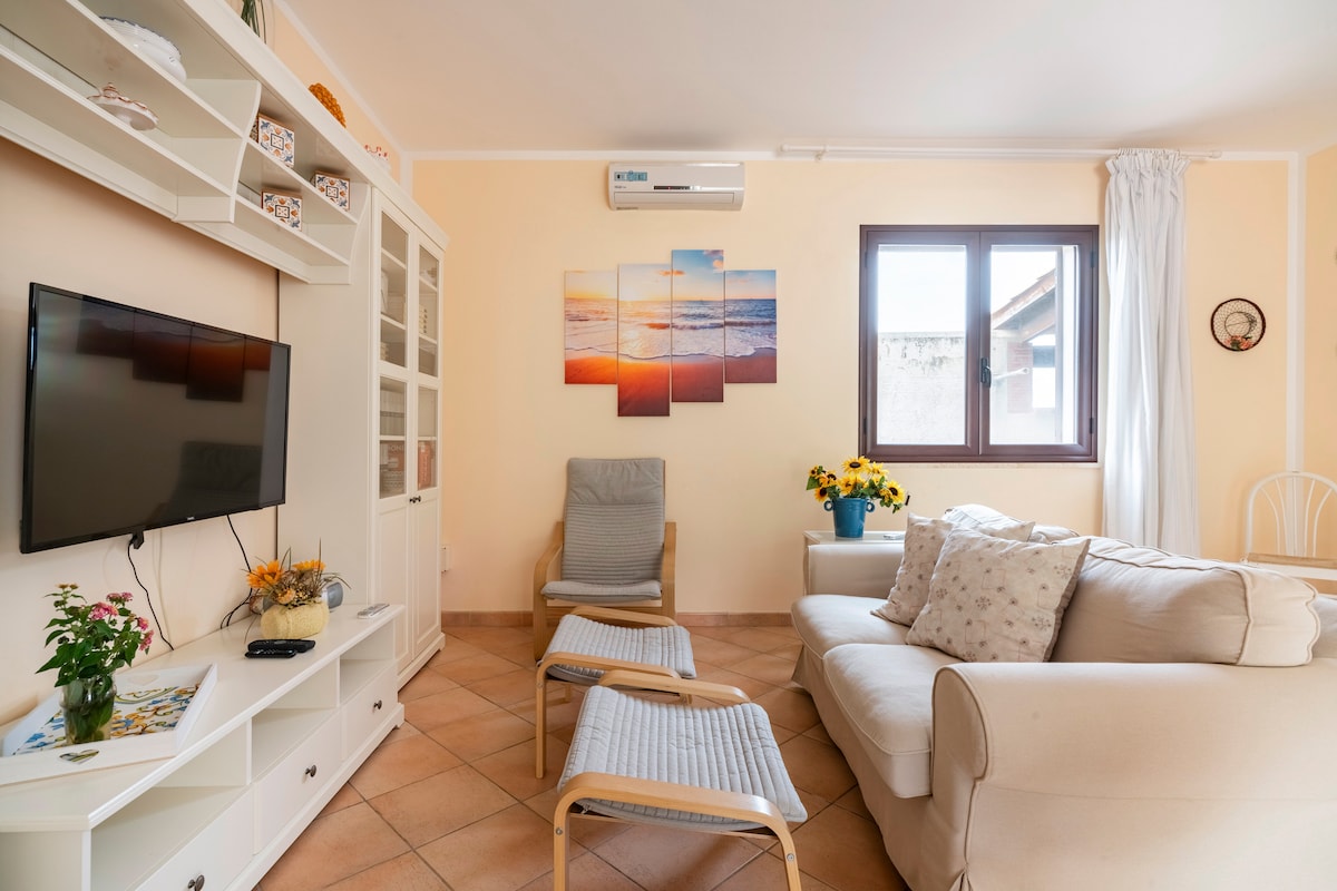 Jūs paliksiet manas villas pirmajā stāvā, 3 minūšu gājiena attālumā no jūras, un tā sastāv no diviem atsevišķiem dzīvokļiem.*Jūs nedalīsieties āra telpās ar citiem viesiem*.Dzīvoklī ir liela ārtelpa ar ēdamgaldu, dīvāniem un atpūtas krēsliem, autostāvvieta ir privāta. Villa atrodas vienā no iespaidīgākajiem Skopello rajoniem, 200 metru attālumā no skaistās Cala Maczo di Sciacca pludmales, un to ieskauj liels, ar kokiem apstādīts dārzs un iespaidīgs skats uz jūru.