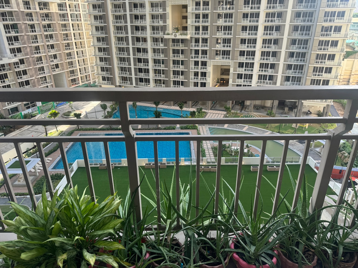 Dzīvoklis ar 2 guļamistabām un skatu uz baseinu netālu no BGC un RMC | Vieta 6 personām