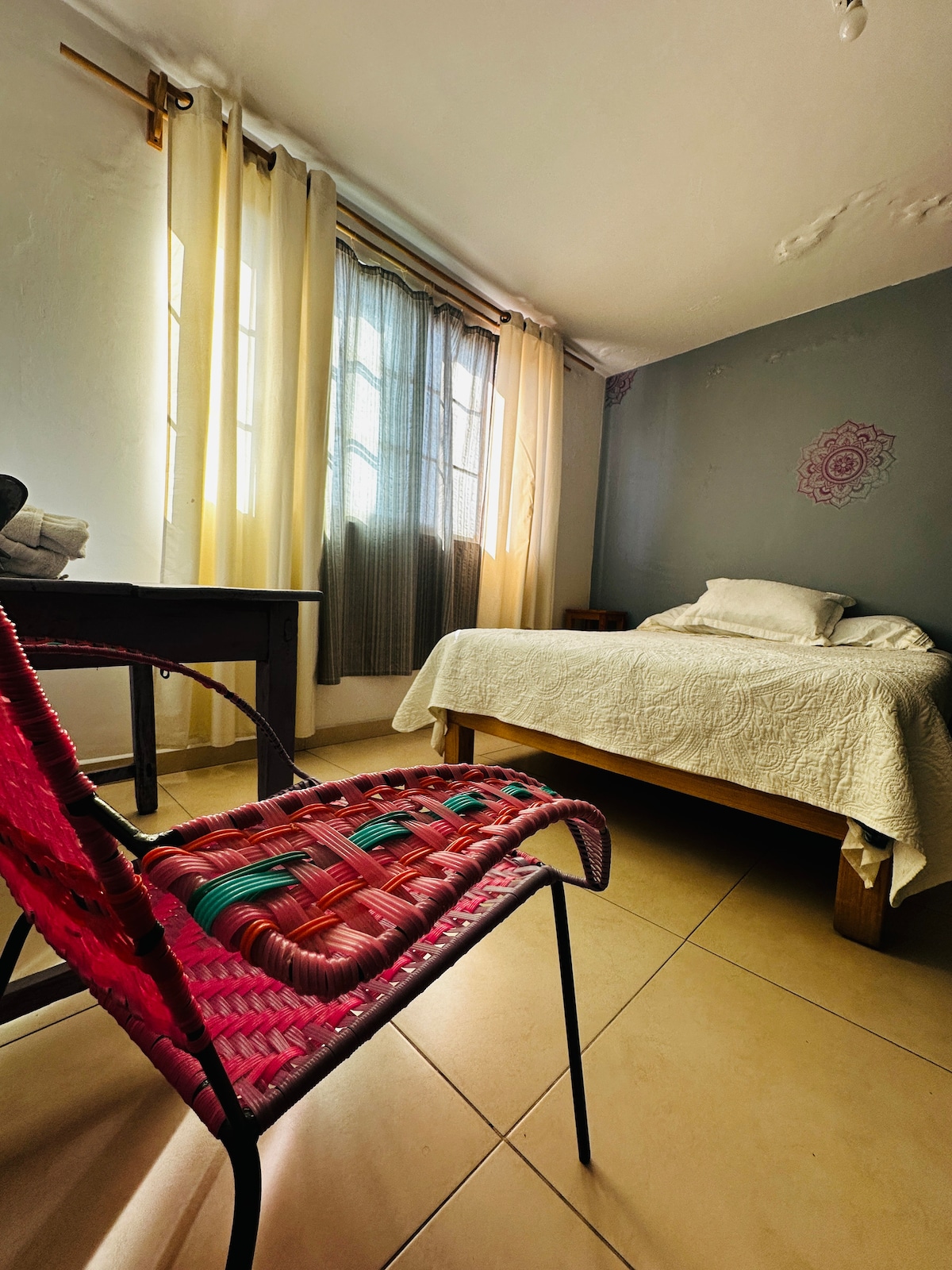 Excelente opción para hospedarse, sintiéndote como en casa, en un departamento completamente remodelado en el centro de la ciudad, a solo 5 min caminando del jardín principal. Todo lo encontraras sin usar un vehículo, restaurantes, museos, iglesias, bares, etc. Contamos con wifi, calentador solar, toallas, TV, cocina equipada, closets, jabones, cuarto con baño completo, sala con sofacama y cochera para un carro.