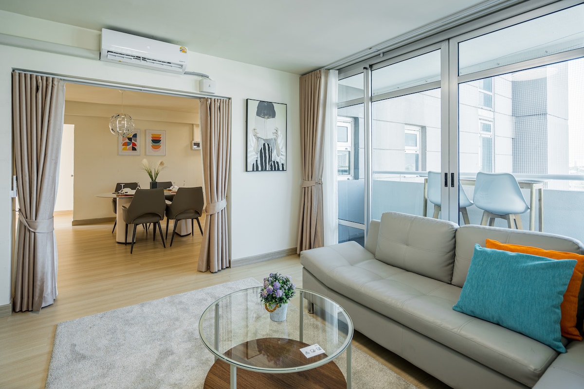 ห้อง105ตรม. 2นอน 2 น้ำ2 ตู้เย็นใหญ่ 2TVครัว,เครื่องซักผ้า WIFI พักได้ 7คน /105 平米2房1廳,我们优於五星酒店例如面積大一倍租金只1/3有五睡床可住7人另有左右开大雪柜2TV 6位大餐台,妝台写字台2厕2陽台供吸烟晾衣并有廚房㕑具齊全,这些优点是五星酒店未能提供的欢迎比較另WIFI洗衣機温水浴等,專接待华人遊客通流利國粵潮州話和泰語,樓下7/11便利店及按摩店林立.附近有小巴總站及粉紅線輕軌,(敬告)夲處不是五星酒店,謝绝接待要求特別高和有潔癖客人,只歡迎不過份挑剔小毛病,能體諒他人的随和人仕光臨(服务週到非誠勿扰)恕不租单日只租住3晚以上