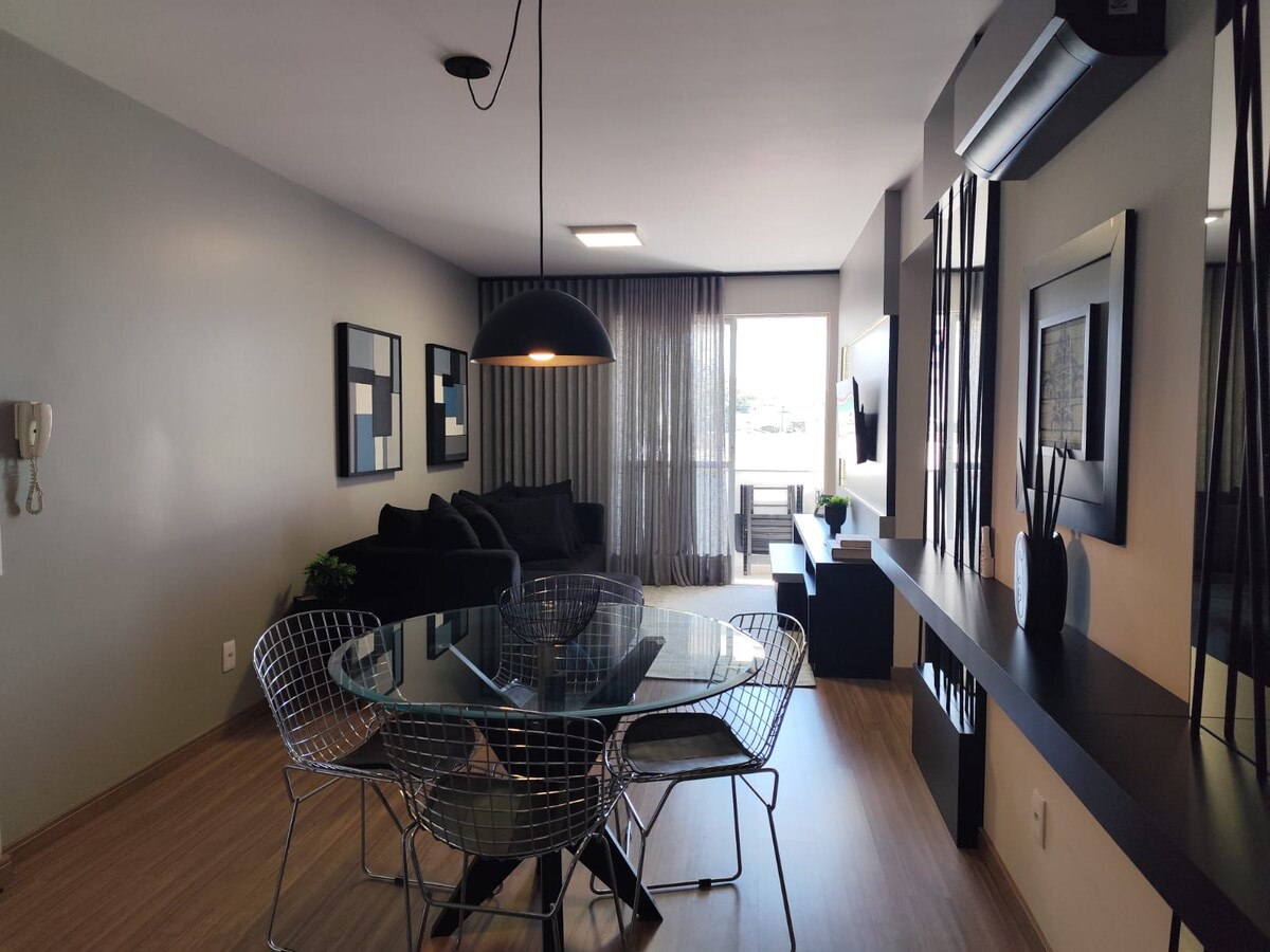 SKAISTAIS dzīvoklis tika sagatavots un iekārtots īrei AIRBNB PLATFORMĀ, lai jūs varētu justies kā mājās, kad neesat savējais! Pato Branco centrā Telpa bija pārdomāti pārdomāta, ka jums ir viss nepieciešamais. Viesistaba ar 45 COLLU VIEDTELEVĪZIJU, jaunu un īpaši ērtu divguļamo dīvānu/gultu. 1 numurs ar jaunu divguļamo gultu, baltiem palagiem un zīda pieskārienu. Atdzīvināta vannasistaba ar apdedzinātu cementu uz sienām. Veļas mazgājamā mašīna. Iepazīstiet un palieciet!