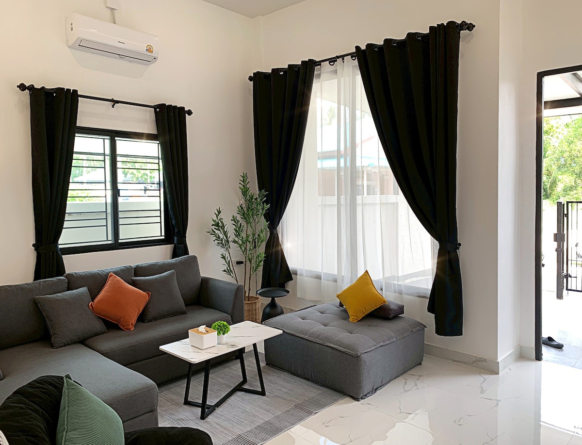 The newly designed accommodation near PSU Pattani, with easy access to Songkhla, Yala, and Narathiwat. Shopping mall, street food, and Big C are just a 3-minute drive away, with cafés and historical attractions nearby. The stylish gallery house features two bedrooms across two floors, plus a rooftop to enjoy Pattani’s view. Each air-conditioned room includes free Wi-Fi and a private bathroom. Non-smoking property. Parking available on-site.