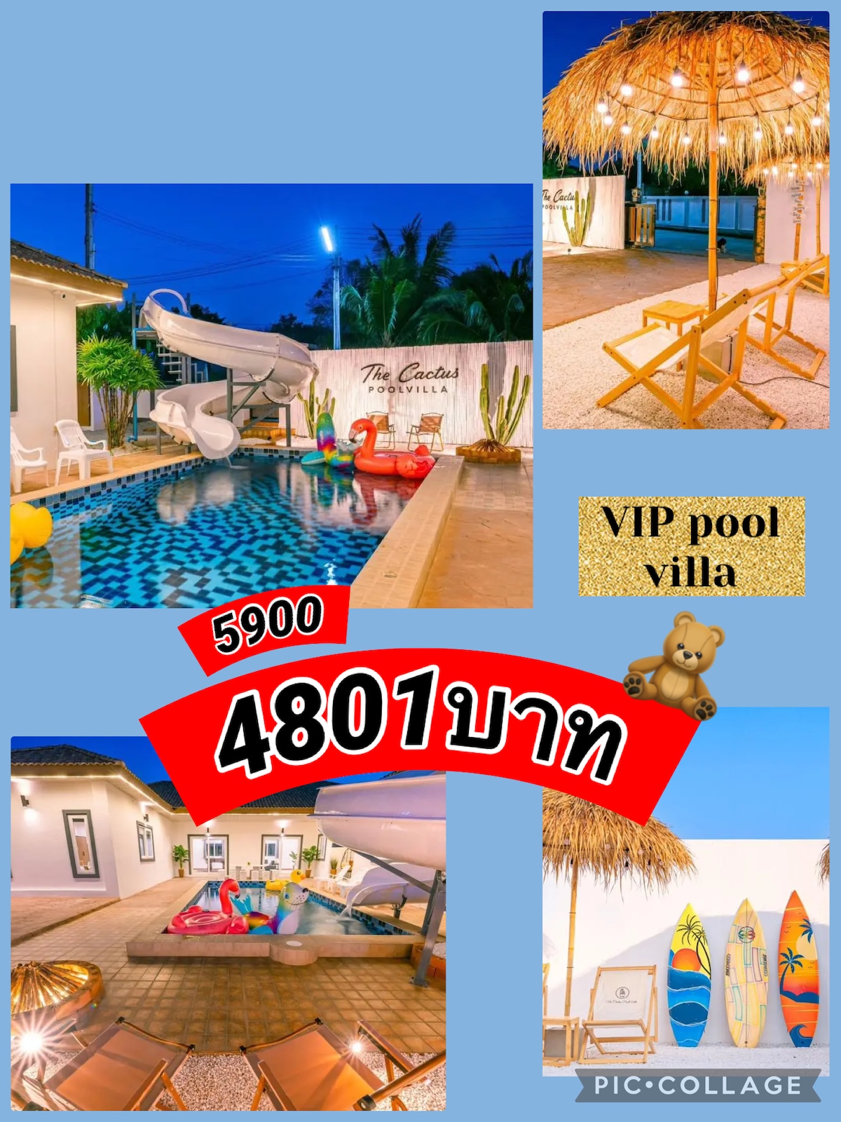 "วิลล่า พร้อมสระว่ายน้ำส่วนตัว ทำให้คุณและครอบครัวได้พักผ่อนเปรียบเหมือนมาพักบ้านของคุณเอง มีสิ่งอำนวยความสะดวกให้พร้อม ท่านสามารถประกอบอาหารและทำกิจกรรมร่วมกันได้ ใกล้แหล่งท่องเที่ยวมากมาย เช่น เขาชีจรรย์,ไร่องุ่นซิลเวอร์เลค,สวนน้ำรามายณะ,สวิสชีพฟาร์ม,upside down,หาดบ้านอำเภอ,หาดบางสเร่,วัดญาณสังวราราม,สวนนงนุช,สนามกอล์ฟชีจรรย์,ร้านอาหารมุมอร่อย โคโม่ ตลาดน้ำ 4 ภาคพัทยา,มิโมซ่า, และอื่นๆ อีกมากมาย งดใช้เสียงดัง หลัง 23:00"