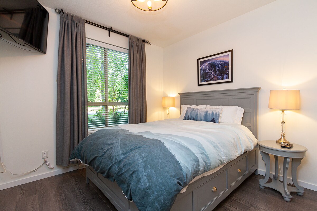 Uzņēmējdarbības licence Nr.797, BC reģistrācija H799005603. Ar nepacietību gaidīšu jūs manā elegantajā dārza dzīvoklī ar vienu guļamistabu. No atsevišķās ieejas jūs ieiesiet ērtā viesistabā ar dīvāngultu, televizoru un rakstāmgaldu, kas atveras pilnajā virtuvē un ēdamistabā. Ir pilnībā aprīkota vannasistaba un guļamistaba ar divguļamo gultu, skapi, kumodi un daudz mantu glabātuves. Skatoties pa logu, jūs redzēsiet satriecošus skatus uz Mt. Currie paceļas 8000 pēdu attālumā no ielejas un ēnaina ēdamistabas terase.