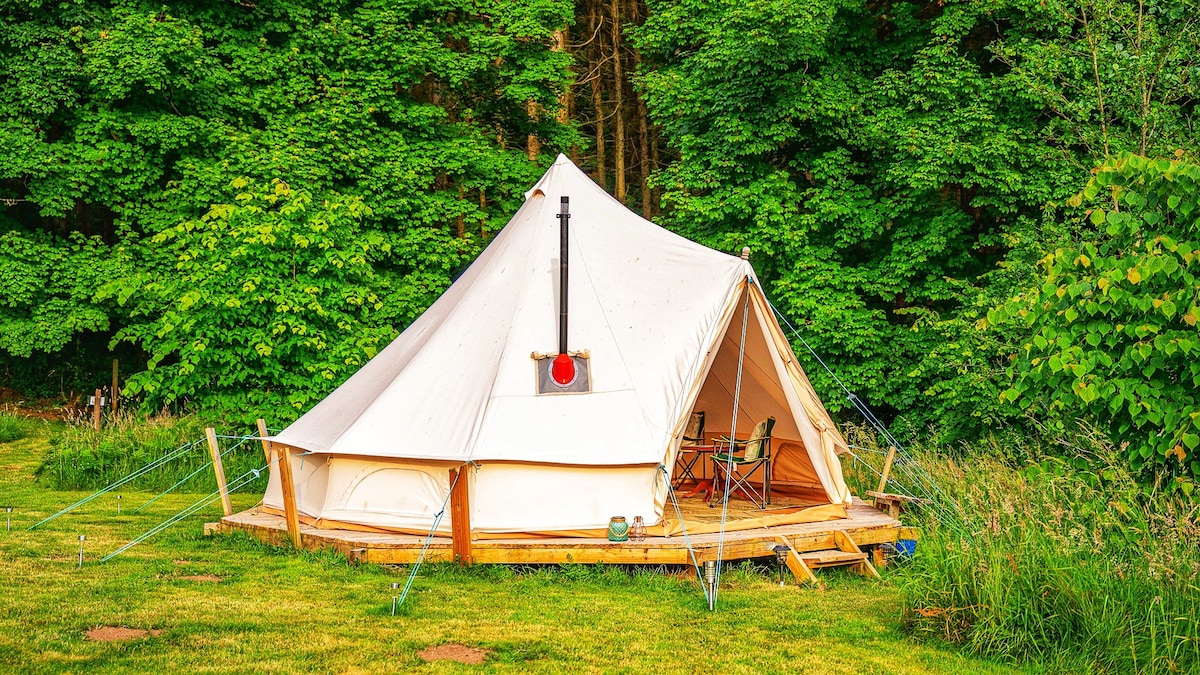 Izbaudiet Pembrukšīras lauku ainavu krāšņā zvanu teltī