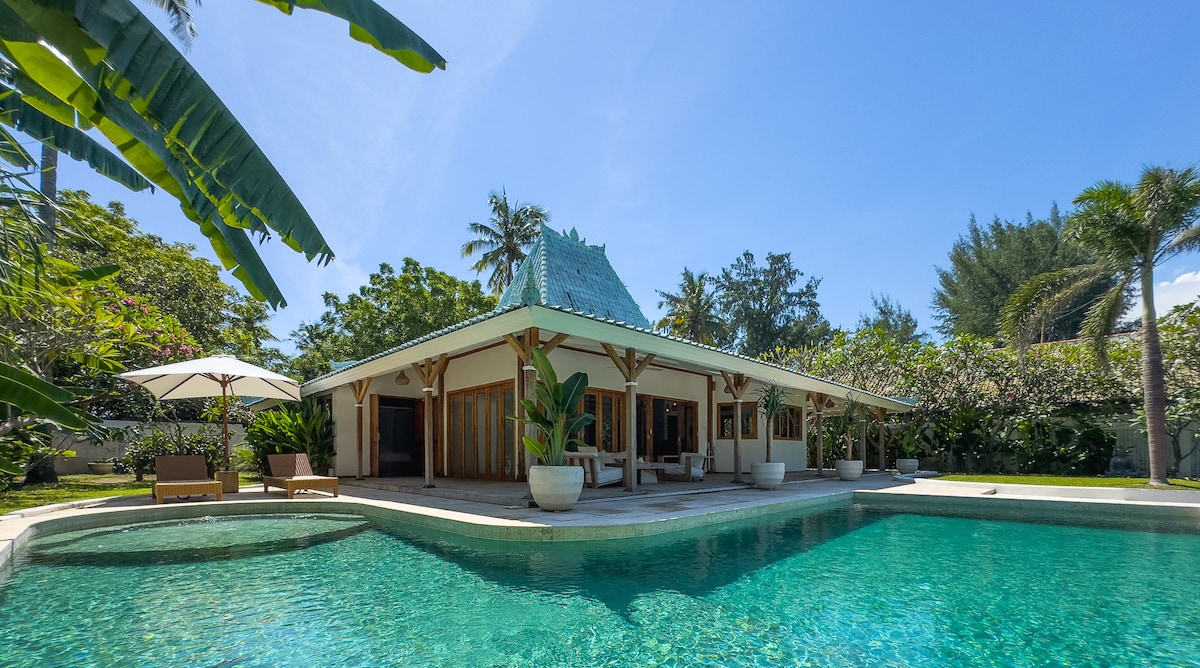 Sapņaina 2BR baseina villa, pakāpienu attālumā no Gili Air pludmales