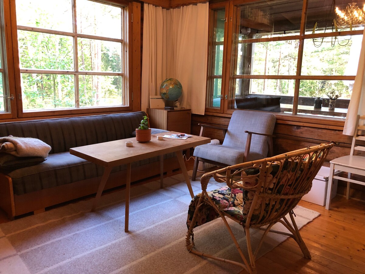 Mājīga un mājīga guļbūves māja mežā, mierā un klusumā, tomēr tuvu pakalpojumiem. Teijo Nacionālais parks ar pārgājienu iespējām dažu kilometru attālumā. Mājiņā ir koka pirts un blakus nelielam dīķim. Viesi, kas uzturas kotedžā, var apmesties arī teltī teltī (par papildu samaksu 150 € nedēļā, iepriekšēja rezervācija no īpašnieka). Etäisyyksiä: Helsinki 120 km, Turku 70 km, Salo 20 km, Mathildedahl 14 km, Teijon kansallispuisto 5 km