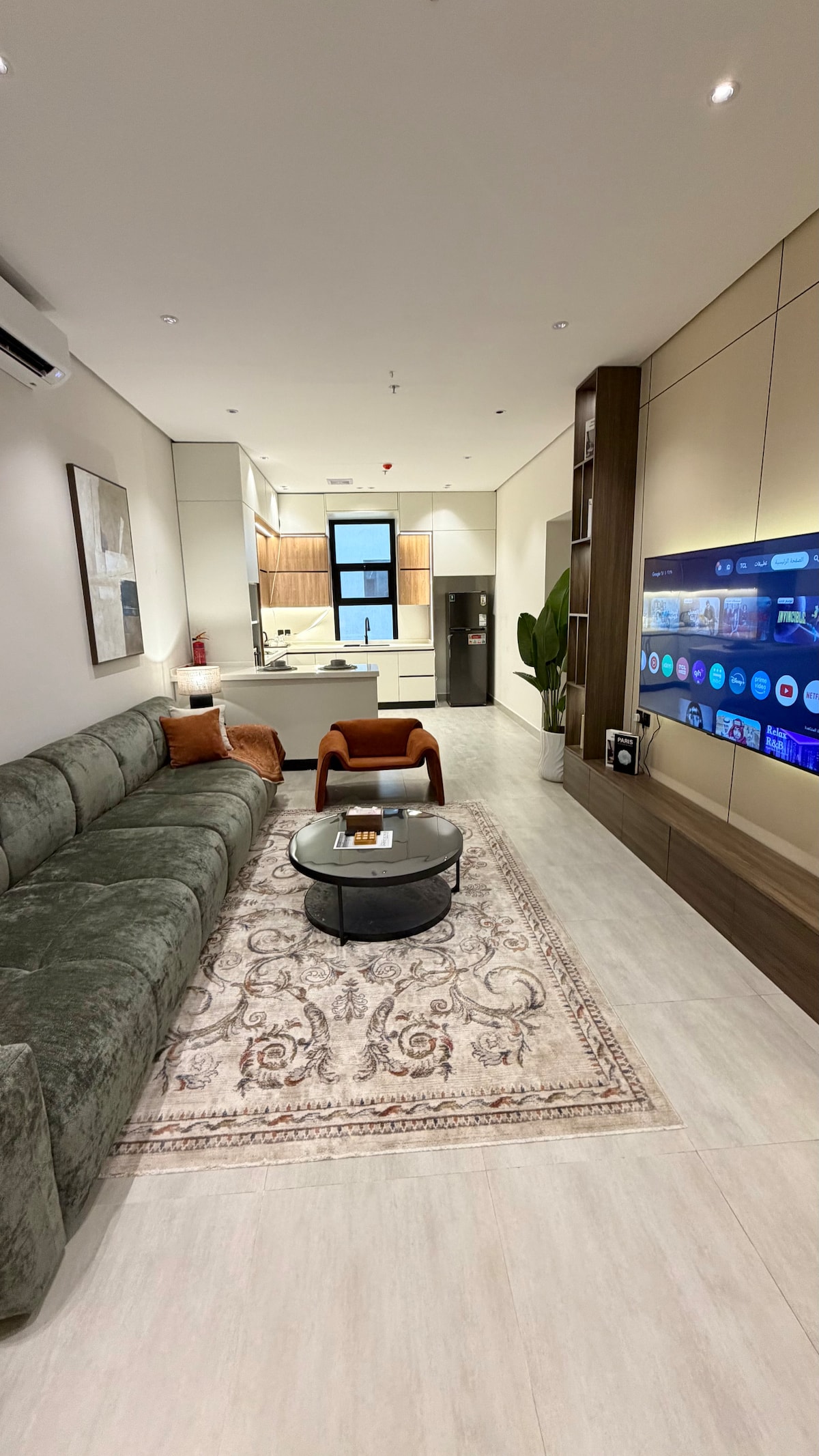 Luksusa viesnīcas dzīvoklis, kas atrodas pašā Khobar pilsētas sirdī, izsmalcinātā un klusā apkaimē, dažu minūšu attālumā no Corniche, Prince Turki ielas un Hess laukuma. Tam ir stratēģiska atrašanās vieta, kas apvieno tuvumu vissvarīgākajām zonām un klusām naktsmītnēm. Tajā ir grezna burbuļvanna ar pārdomātu apgaismojumu, kas piešķir mājoklim siltumu un eleganci. Piezīme: ir stingri aizliegts rīkot ballītes vai pulcēšanās, lai saglabātu iedzīvotāju privātumu un komfortu. (500 SAR apdrošināšana, kas jāatmaksā pēc izrakstīšanās laika)