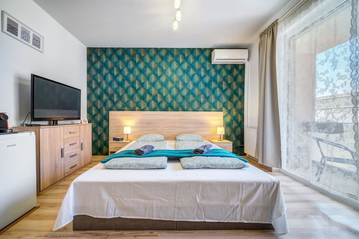Elegants un plašs dzīvoklis Budā ar lielu privātu terasi ar skatu uz klusu iekšējo dārzu. Atpūtieties šūpuļkrēslā, baudot rīta kafiju, vai atvelciet elpu pēc dienas, kas pavadīta pilsētā. Ideāli piemērots pāriem, darījumu ceļotājiem vai ilgākai uzturēšanās laikā. Iekļauta pašreģistrēšanās un ātrs Wi-Fi. • Elegants, plašs interjers • Pašreģistrēšanās jebkurā laikā • Ātrs un uzticams Wi-Fi • Pilnībā aprīkota virtuve • Viegla piekļuve pilsētas centram NTAK: MA24106080