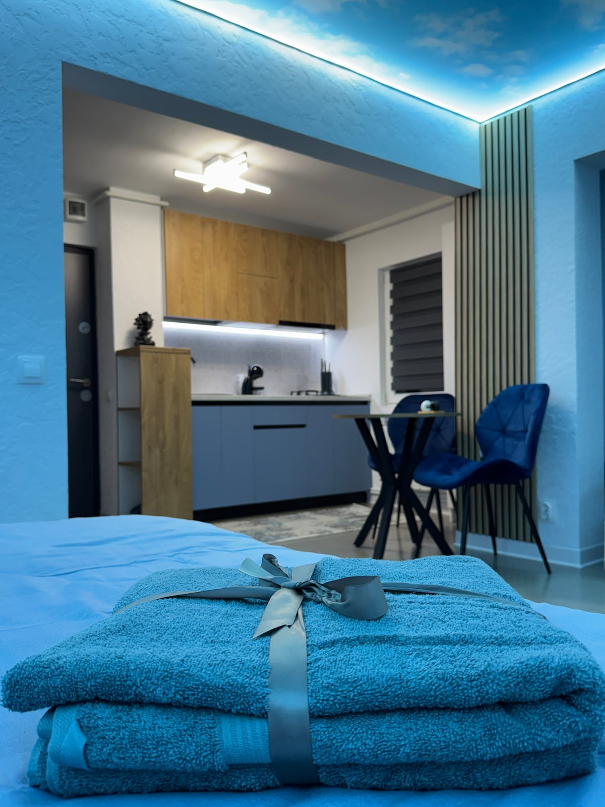 Viesiem būs ērta piekļuve visam, sākot no šī centralizēti izvietotā mājokļa. Ir jauks, pavisam jauns dzīvoklis divām personām, kas palīdzēs jums izbaudīt un atpūsties. Dzīvoklis ir aprīkots ar jaunu kafijas automātu, mikroviļņu krāsni, ledusskapi un saldētavu, plašu dušu, fēnu, gludekli, vannasistabu ar ventilāciju,televizoru, internetu, Netflix, rumāņu kanāliem, divguļamo gultu un vienu jauku dīvānu ar diviem viesistabas krēsliem un daudziem citiem . Jūs varat saņemt visu, kas jums nepieciešams uzturēšanās laikā