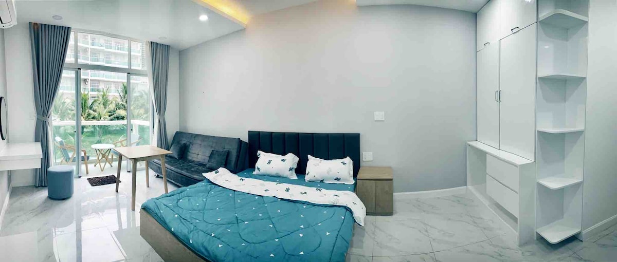 1 guļamistabas viesnīcas tipa dzīvoklis ar skatu uz pludmali un diennakts apsardzi. Mūsu dzīvoklis atrodas Ocean Vista kompleksā. Šī ir ideāla vieta, kur atrast savu iekšējo mieru vai pavadīt dārgo laiku kopā ar ģimeni. Jūs varat piekļūt privātai pludmalei, baseinam un sporta zālei par nelielu samaksu. - Publiskā pludmale: bez maksas - privāta pludmale: 50 000 VND (2 $) par personu. - Privāts baseins: 150 000 (6 $) par personu - Privāta sporta zāle: 150 000 (6 $) par personu