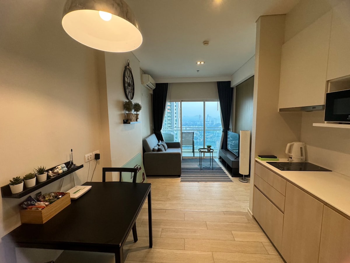 Moderns dzīvoklis luksusa dzīvojamajā kompleksā ar lielu peldbaseinu. Izbaudiet lieliskus skatus uz apkārtējiem kalniem, piekrasti un tropu dārziem no dāsnā balkona. Dzīvoklis ir lieliska bāze Pataijas un Bangsarajas dārgakmeņu izpētei, jo pludmales, jūras velšu restorāni, golfa laukumi, jahtklubi un citas tūrisma vietas ir viegli sasniedzamas! Izbaudiet autentisku itāļu virtuvi labi novērtētajā Paradiso restorānā.