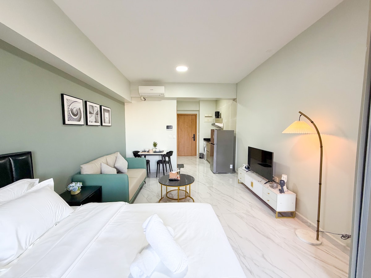 Laipni lūdzam jūsu jaunajā studijas tipa patvērumā dinamiskajā Beoung Trabek apkaimē (netālu no Krievijas tirgus)! Šis pilnībā mēbelētais dārgakmens 26. stāvā piedāvā modernu un ērtu dzīvojamo telpu. Ieejiet savā plašajā 45 kvadrātmetru mājoklī, kur jūs ar siltumu un stilu sagaida atvērta viesistaba. Bezmaksas dzeramais ūdens. Bezmaksas Wi-Fi. DAZN sporta televīzija (NFL un citi). Šautriņu dēlis. Jumta peldbaseins (viens stāvs virs) un sporta zāle. Skats uz slepkavu. Divguļamās gultas izmērs ir 150 cm x 200 cm. NESMĒĶĒJIET. A/C PLKST. 23/24, LŪDZU.