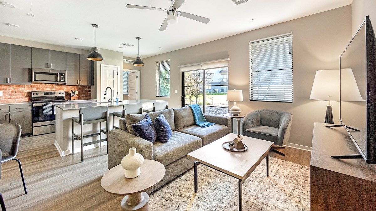 Jūsu plašajā divu guļamistabu dzīvoklī ir divguļamā gulta, daudzpusīga otrā guļamistaba un pilnībā aprīkota virtuve. Izbaudiet HDTV katrā istabā un Wi-Fi! Tuvu Rūzvelta rindai un 10 minūšu attālumā no Skaiharboras lidostas. 🌵 Izbaudiet pilsētas burzmu un kūrorta stila komfortu AVE Phoenix Terra, kur mūsu īpašā apkalpošanas komanda ir pieejama septiņas dienas nedēļā! 🏆. Atpūtieties mūsu jumta baseinā ar panorāmas skatu, strādājiet attālināti mūsu darījumu centrā vai aktīvi darbojieties mūsu diennakts fitnesa iestādē.