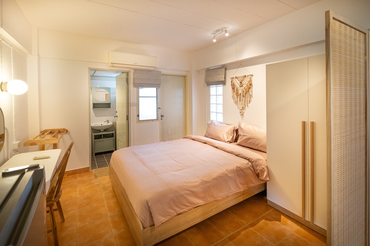 Šī vēsā, tīrā un ērtā "queen" izmēra luksusa studija ir ideāla vieta, kur atgriezties pēc karstas dienas, izpētot labāko, ko Bangkoka var piedāvāt. Šajā gaišajā studijā ir divguļamā gulta (Queen), vannasistaba ar atsevišķu ieeju, gaisa kondicionētājs, bezmaksas Wi-Fi un citas papildērtības. Pašlaik mūsu kaimiņi dienas laikā būvē savu māju.