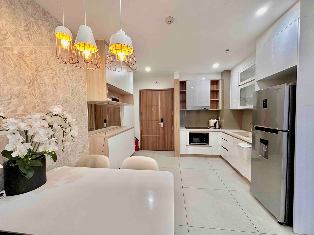 Greznais un izsmalcinātais dizaina dzīvoklis var sniegt klientiem ideālu dzīves pieredzi ar augstas klases komunālajiem pakalpojumiem un funkcijām. Tostarp: Premium: gaisa kondicionēšanas sistēma, drošības sistēma visu diennakti bez brīvdienām un magnētiskā slēdzene. Satriecoši skati uz upi Plaša telpa: dzīvoklī ir plaša dzīvojamā telpa ar 2 guļamistabām, 2 tualetēm, 1 viesistabu, virtuvi ar pilniem ēdiena gatavošanas piederumiem. Tie viesiem sniedz lielisku dzīves pieredzi ar brīvību, privātumu un augstākās kvalitātes papildērtībām.