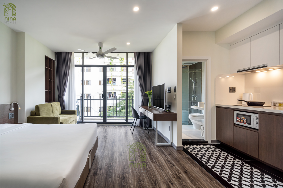 Laipni lūdzam Nina Homes ! Mēs esam nesen atjaunotas viesnīcas tipa studijas vienā ēkā, kas atrodas zaļā, lapotā, mierīgā un dinamiskā Korejas pilsētas daļā, Phu My Hung Urban, dienvidu HCMC. Mūsu studijas (28-30 m2) ir piepildītas ar dabisko apgaismojumu, privātiem balkoniem, Electrolux veļasmašīnu/žāvētāju un pilnu virtuvi ar pamata virtuves piederumiem/galda piederumiem un garšvielām jūsu ēdiena gatavošanas vajadzībām katrā istabā. Lieliski un ērti gan īstermiņa/ilgtermiņa rezervācijām, gan darījumu braucieniem, gan ceļotājiem.