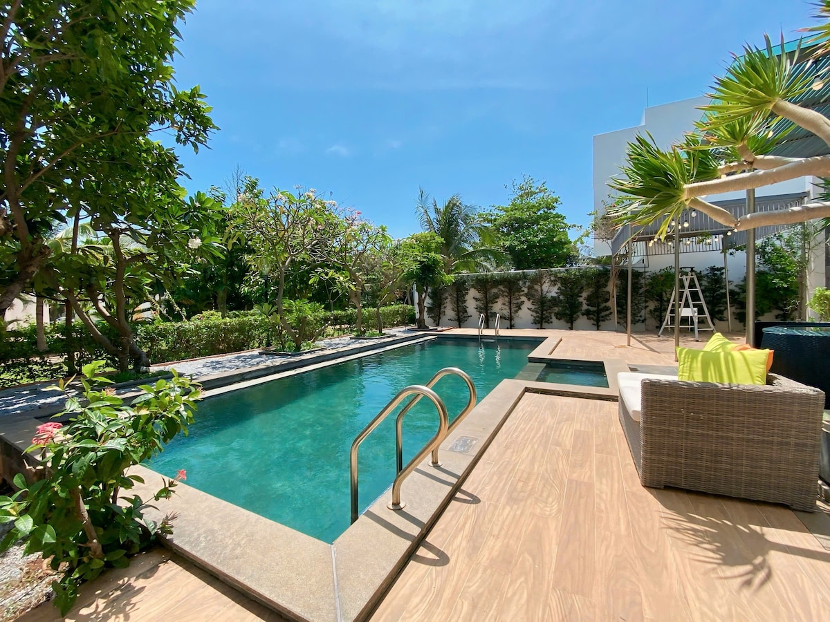 Šis ir PLUDMALES PRIVĀTAIS BASEINS VILLA 4 BR+ 4 vannasistabas, kas pieder pie Ho Tram kūrorta 2. posma. - Zemes platība: 492 m2 -4 divvietīgas guļamistabas (iekļautas 3 divvietīgas guļamistabas ar balkonu ar piemērotu vannasistabu + 1 divvietīga guļamistaba apakšstāvā, izmantojot vannasistabu ārpus istabas). - Izmitināšana 8 pieaugušie + 4 bērni līdz 11 gadu vecumam -Navāds sauļošanās krēsls izklaidei - Mierīgi, tropu labiekārtoti dārzi - Pilnībā aprīkota virtuve - Privāts peldbaseins - Autostāvvieta ar pārsegu