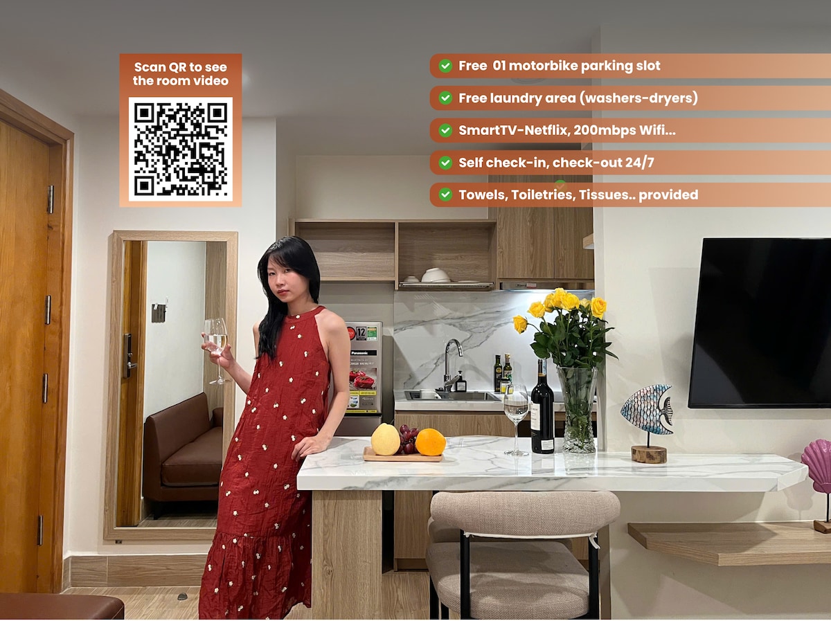 Dzīvojiet kā vietējie Saigonas slēptajā gardēžu ielā tikai 5 minūšu attālumā no D1. Šī mierīgā, stilīgā Japandi atpūtas vieta atrodas pašā Phəm Viət Chánh (Mazā Japāna) sirdī, soļu attālumā no modernām kafejnīcām, bāriem un izakajām. Atpūtieties dziļajā vannā vai baudiet svaigu gaisu savā privātajā balkonā. 5 minūšu brauciena attālumā ir Bach Dang Quay, Duc Ba baznīca un Saigonas operas nams Ekskluzīvas priekšrocības: ⭐ Lifts ⭐ BEZMAKSAS papildu dvieļi (agrīns pieprasījums) ⭐ Privāta veļas mazgājamā mašīna un žāvētājs ⭐ Ātrā piekļuve Wi-Fi un Netflix ⭐ Šampūns un ķermeņa mazgāšanas līdzeklis