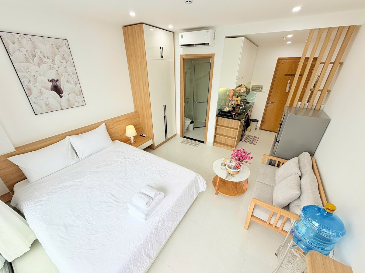 Studijas tipa 🌟dzīvoklis ir pārpludināts ar dabisko apgaismojumu, nodrošinot atvērtu un patīkamu sajūtu tajā brīdī, kad ieejat mājoklī🍃. Par katru mazo stūrīti tiek parūpēts - no garā rakstāmgalda līdz plašajai gultai blakus logam. Nelielais balkons ir skaists, 🌿 un logs ir plaši atvērts, lai palīdzētu telpai saglabāt vēsumu. Sagaidiet svaigo vēju. Dzīvoklis ir pilnībā mēbelēts 🛋️ – vienkārši ņemiet līdzi koferus un izbaudiet dzīvi🎒✨.