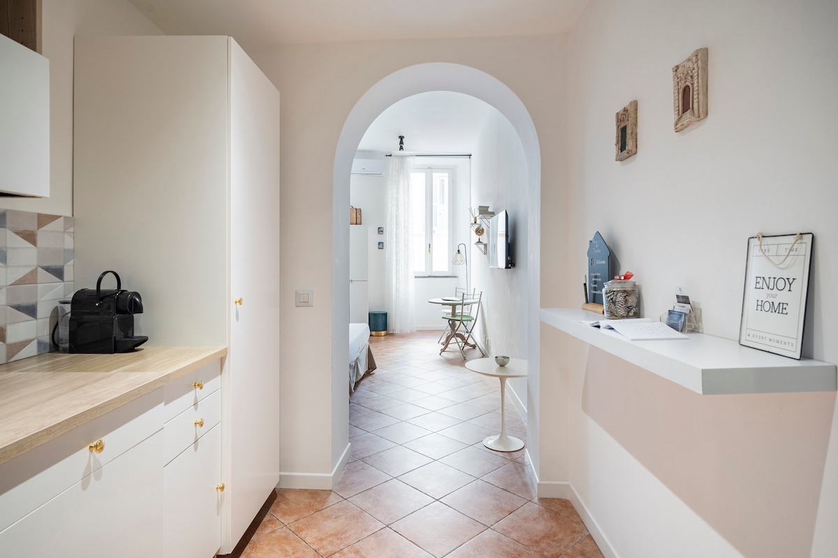 Brīnišķīga un ērta studija, kas atrodas Romas vēsturiskajā centrā, dažu metru attālumā no Panteona, pilnībā atjaunota, tā atrodas ceturtajā stāvā bez lifta. Stilīgi iekārtots mājoklis ar skaistiem koka griestiem, parketa grīdām un marmora kamīnu. No mazā balkona paveras skats uz Romas raksturīgo aleju un jumtiem. Atrašanās vieta ir stratēģiska un ideāli piemērota, lai dotos uz Romas brīnumiem.