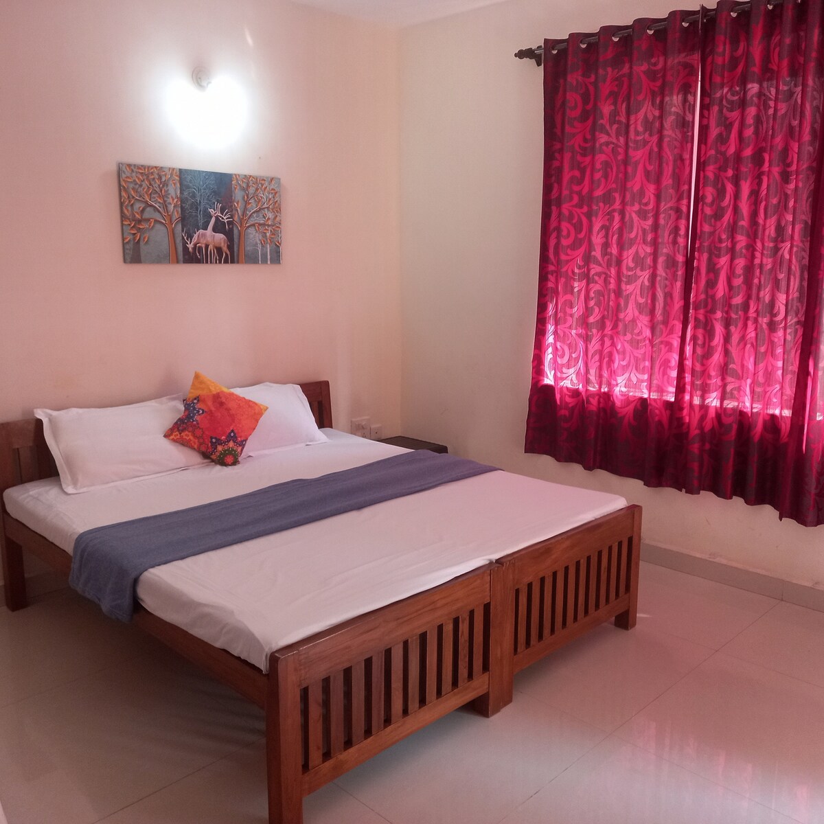 Sertificējis Goa tūrisma jomā 950 kvadrātpēdu dzīvoklis ar gaisa kondicionētāju: 2 guļamistabas, 2 vannasistabas, TV/dzīvojamā istaba, atvērta virtuve; veļas stūrītis + 500 kvadrātpēdu telpa bez gaisa kondicionētāja: ēdamistaba 4 personām; sauļošanās istaba; ēnaina terase; balkons brīvā dabā 300 Mbps internets; 4-5 stundu rezerves barošana; 50collu viedtelevīzija; grāmatas; galda spēles; darbstacija un segta autostāvvieta Atrodas Porvorim: 15min Panaji/Mapusa; 25min Calangute/Baga; 30 min Anjuna/Vagator; 45-60min Ashvem/Mandrem/Arambol; 60-75 min South Goa pludmales; 120min Palolem