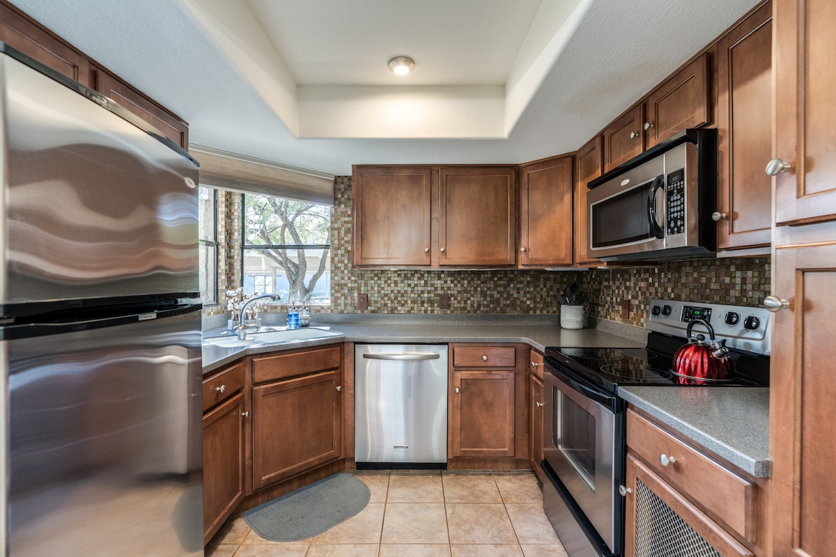 Šis augšstāva daudzdzīvokļu nams piedāvā nošķirtības sajūtu ar fantastiskām papildērtībām. Viss, kas jums nepieciešams, ir šeit! Pastaigājieties pa savām privātajām kāpnēm un atveriet atjauninātu dienvidrietumu stila mītnes oāzi ar lielu dabiskā apgaismojuma daudzumu, privātu lanai un skatu uz tuvējiem kalniem, tuksnesi un pilsētas apgaismojumu. Pilnībā mēbelēts, ideāli piemērots ilgtermiņa atvaļinājumam. Virtuve ir pilnībā aprīkota ar visu, kas nepieciešams, lai pagatavotu gardu maltīti. Kopienai ir 2 baseini/spa, fitnesa centrs un tenisa korts.