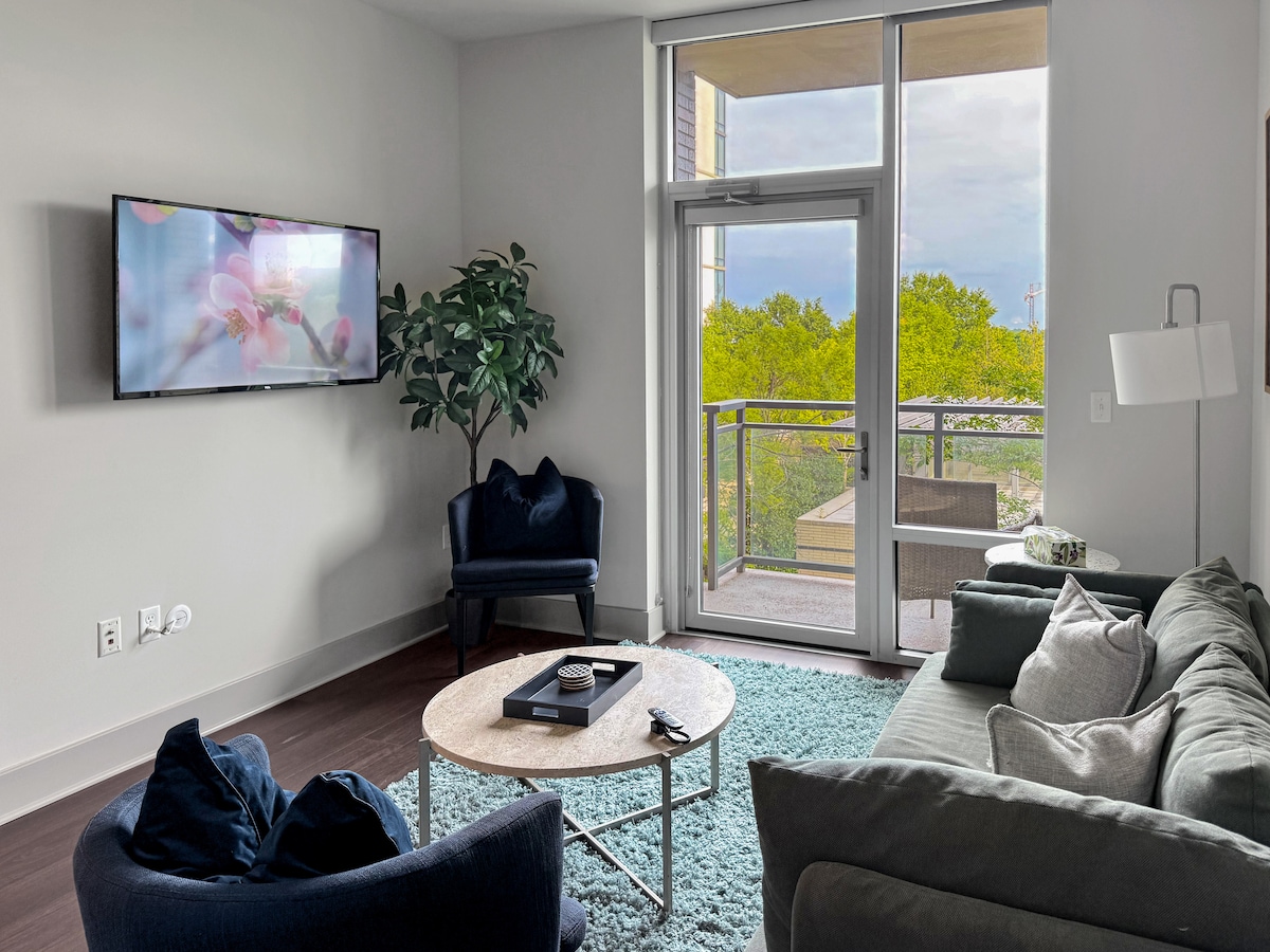 Wake up in a bright, modern 1BR apartment in the heart of Tysons. Brew coffee in your fully equipped kitchen before stepping out to Tysons Galleria or hopping on the Silver Line Metro. After a day of work or exploring, unwind in the cozy living room or recharge in the plush bedroom. With WiFi, in-unit laundry, and access to building amenities (gyms and lounges), this space is perfect for both short-term stays and extended visits.