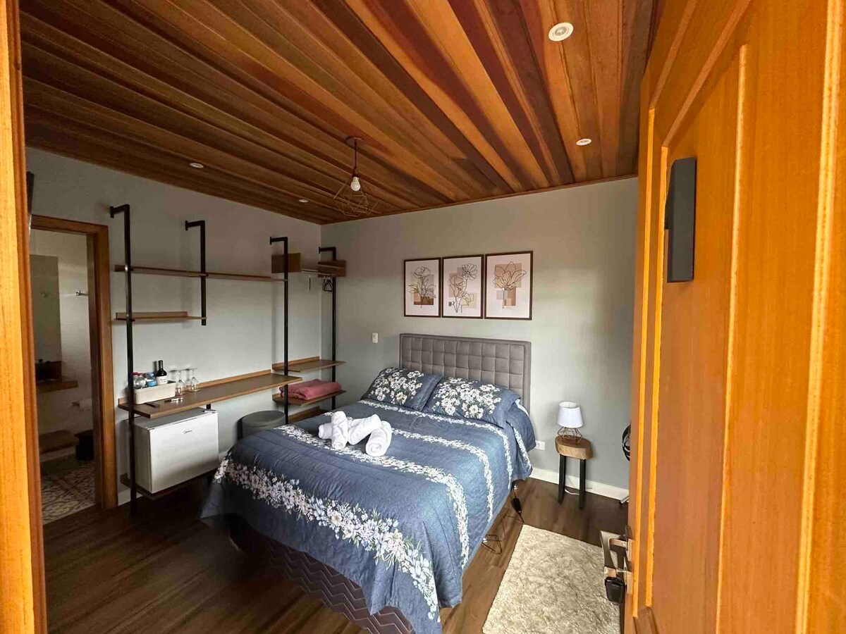 Mājīgs un mājīgs mājoklis, kas radīts īpaši aizrautīgam pārim ar visu mīlestību ❤️ Ar pilnībā aprīkotu virtuvi, nevainojamu un plašu vannasistabu, guļamistabu ar "queen" izmēra gultu, ar mīkstiem spilveniem un gultasveļu un siltām, mājīgām segām pavadīt aukstas naktis, ko piedāvā tikai Campos do Jordão❄️🫶🏻 Un tas atrodas ļoti tuvu tūrisma centram (15 min) un 5 min attālumā no tirdzniecības centra