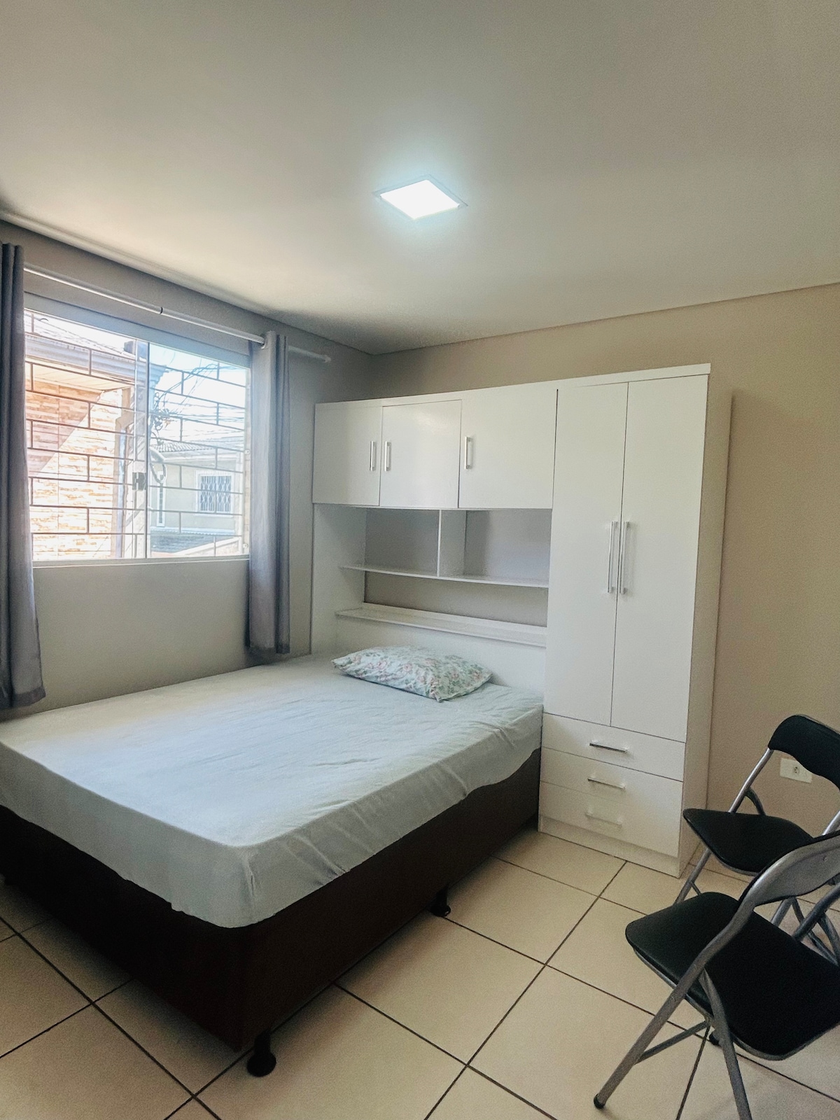 mājīga studija, ideāla 1 vai 2 personām. Gaisīga un labi apgaismota vide ar ērtu divguļamo gultu, virtuvi aprīkots ar mikroviļņu krāsni, ledusskapi, kafijas automātu, traukiem, Wi-Fi, Smart TV ar Netflix. Droša ārtelpu vide, ko uzrauga kameras. Atrodas Pinhais, Kuritibas metropoles reģionā, netālu no Jockey Plaza, Exportrad. Ar vieglu piekļuvi tirgiem, transportam un tirdzniecībai. Ideāli piemērots darījumu braucieniem, studijām vai atpūta. Komforts, praktiskums un lieliska atrašanās vieta vienuviet!