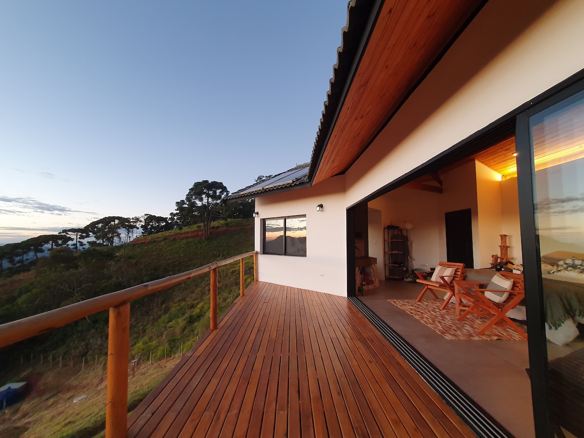 Atvienojieties šajā konteineru kalnu namiņā Gonçalves kalnos uz 22 000 kvadrātmetru liela zemes gabala apkaimes augstākajā punktā. Šis patvērums ar modernu un viesmīlīgu dizainu piedāvā ideālu līdzsvaru starp komfortu un dabu. Izmisiet savu piedzīvojumu garu šajā apburošajā namiņā. Atpūtieties pie ugunskura, kamēr ugunskurs rada viesmīlīgu atmosfēru. Izjūtiet kalnu vēju, vērojot maģisko saulrieta izrādi tieši no sava privātā balkona