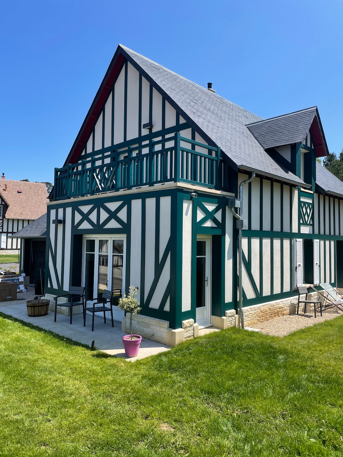 Individuāla māja 2 km no Dovilas. Smilšu pludmale 370 m. Privāts dārzs uzturēts 600 m². Dārza mēbeles, BBQ Autobuss, maiznīca/konditoreja 120m. Hipodroms 300 m. 800 m lielveikals. SNCF stacija - 2,8 km. Golfa laukums - 3,5 km Līguma bildes: lauku mēbeles. Veļas mašīna, drēbju žāvētājs, gludeklis, fēns. Papildu viesistabas dīvāngulta (augšējais matracis aiz dīvāna). Komplektā ir palagi, dvieļi. Atļauti mājdzīvnieki, slēgts dārzs: vēja vārti, skata augstums 1,20m.
