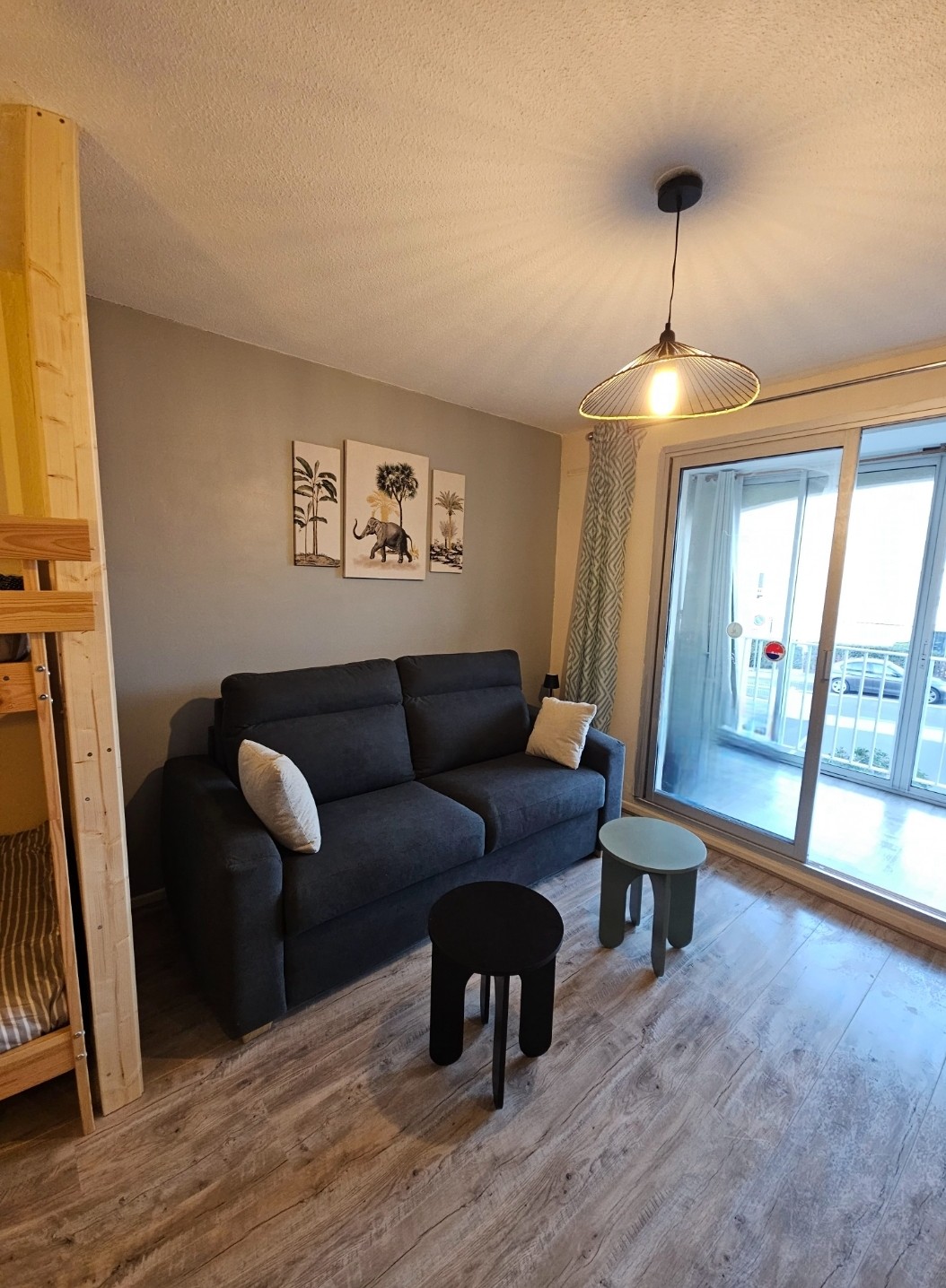 Appartement cosy et chaleureux de 29m2. Au 1er étage de la résidence "Plein Soleil", à 10 min à pied des commerces et 20 min de la plage. Avec un parking sécurisé à disposition, il vous suffira de garer votre voiture pour profiter pleinement de vos vacances à pied. De plus, chaque samedi, le célèbre marché du Cap, se déroule a quelques mètres seulement. Petit plus : location de draps à la demande.